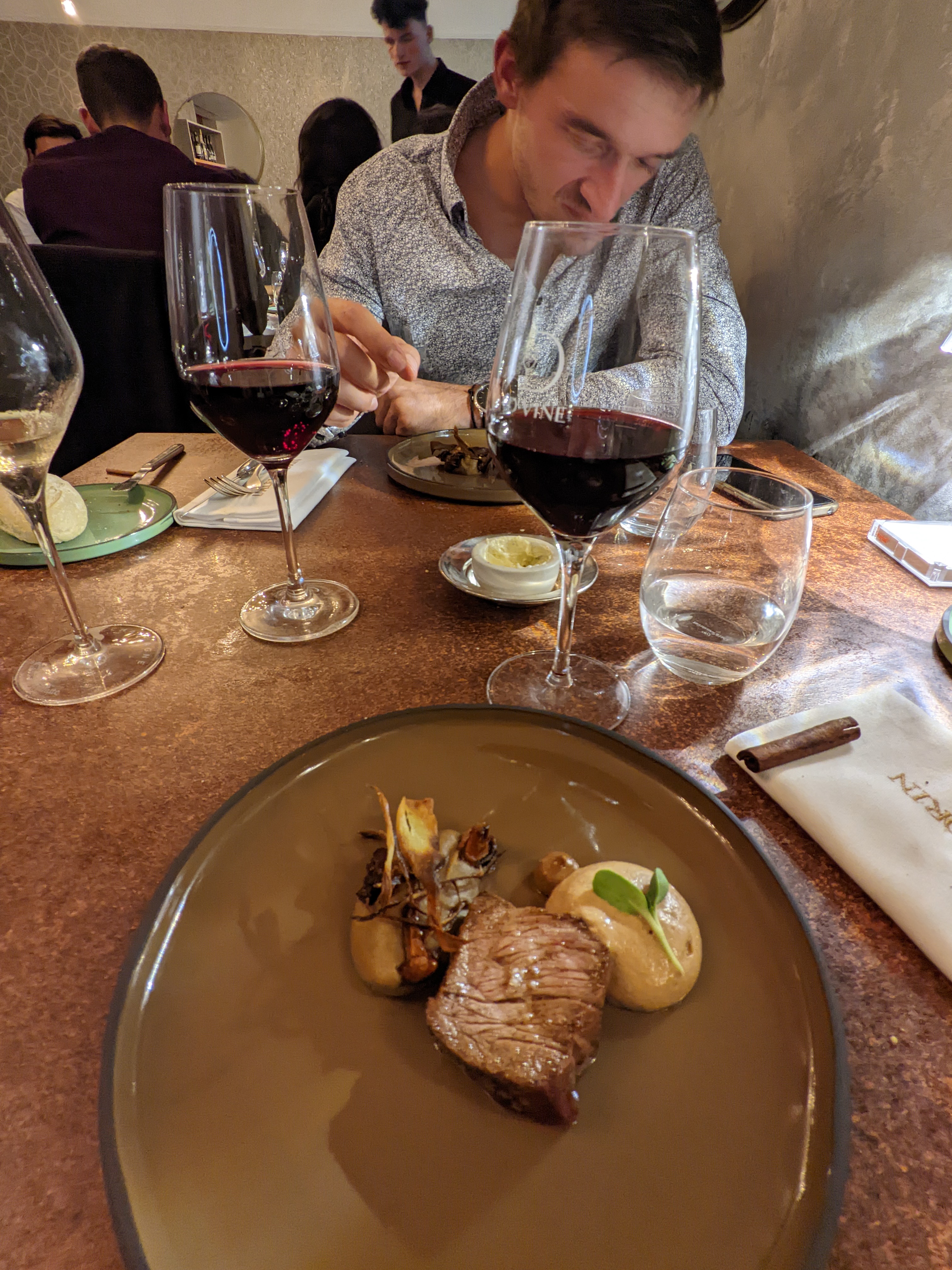 Réservé avec un groupe de 4 personnes et a été personnellement accueilli par le chef à la porte. Nous savions à partir de ce moment-là que ce serait une expérience. Une approche moderne mais pas trop compliquée de la cuisine française. un repas absolument délicieux de bout en bout.