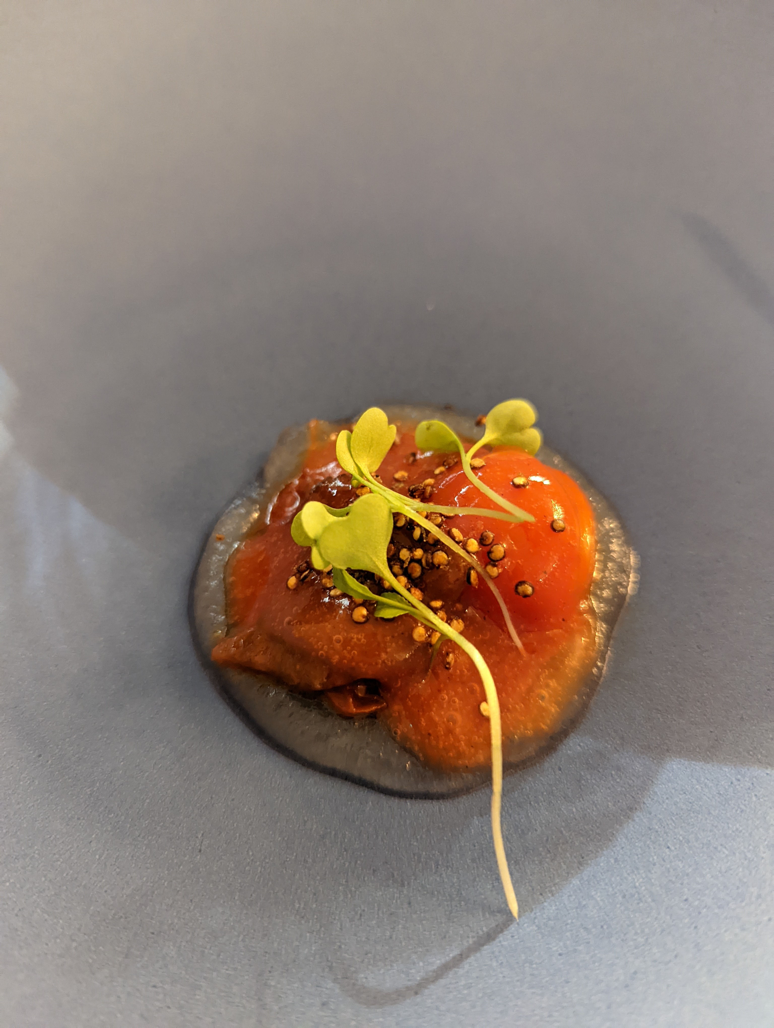 Avis mitigé. J'ai l'habitude de faire des restaurants au même prix, voire plus cher mais c'est la première fois que je ressors en ayant faim. Payer 60€ rien que le menu et 12€ pour un jus de fruit, pour finir ensuite dans un fast food afin de combler le creux à l'estomac laisser par ce repas, je trouve ça dommage. Hormis cela, nous avons aimé ce qui nous a été servi et nous avons été parfois surpris par les sensations en bouche. C'était très agréable. J'ai été particulièrement contente de pouvoir déguster le dessert le fruit frai qui a su ravir mes papilles. Encore une fois, dommage que les quantités n'aient pas été au rdv sur le reste car notre repas aurait pu être parfait.
