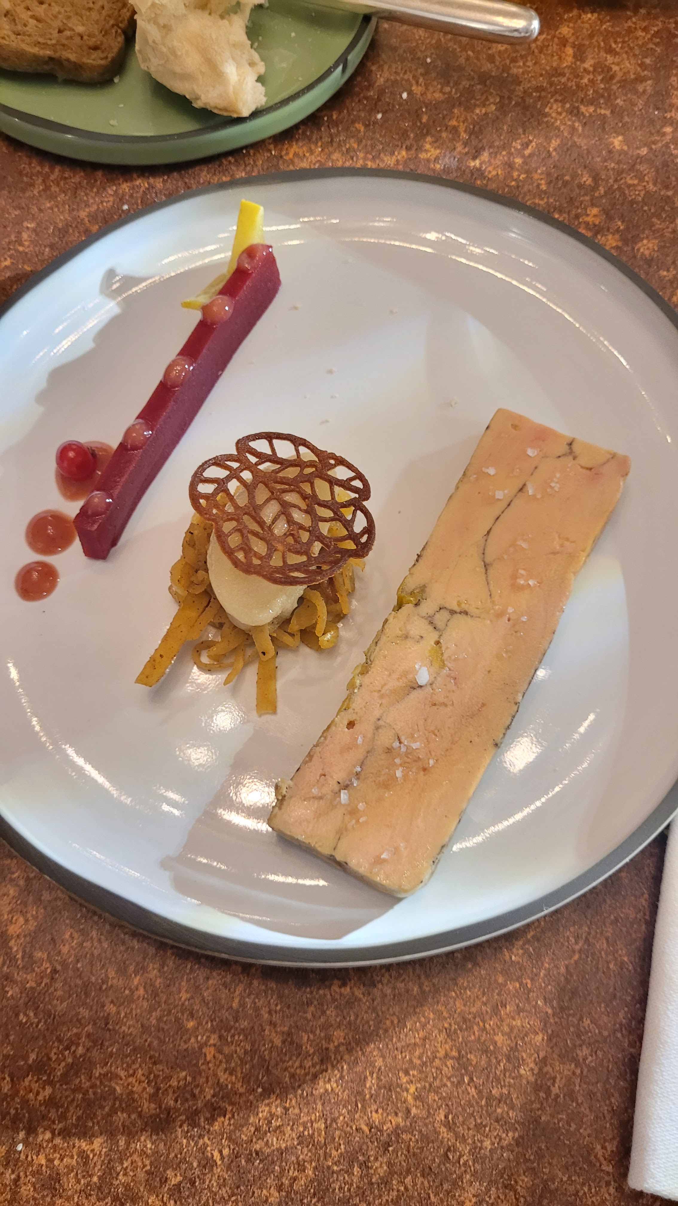 Si je pouvais donner 6 étoiles au service et à l’atmosphère, je le ferais. La soirée a commencé avec le chef Laurent accueillant les invités dans la salle à manger comme s'ils étaient de vieux amis venant à un dîner. Lui et la serveuse avaient une présence constante dans la salle à manger, ce qui garantissait que tous les invités passaient un bon moment. Mon partenaire et moi avons tous deux choisi l'une des options à la carte plutôt que l'un des menus dégustation et avons regretté d'avoir raté l'occasion d'essayer davantage de plats proposés. Cela dit, nous avons tous les deux eu du mal à aller jusqu'au bout du repas car les portions étaient assez généreuses. Sur les 6 plats (3 chacun) + amuse-bouche, il n'y a eu aucun manque. L'accord mets et vins avec chaque plat était également un excellent complément au repas. Je recommande vivement un voyage à l'Alexandrin si vous êtes à Lyon