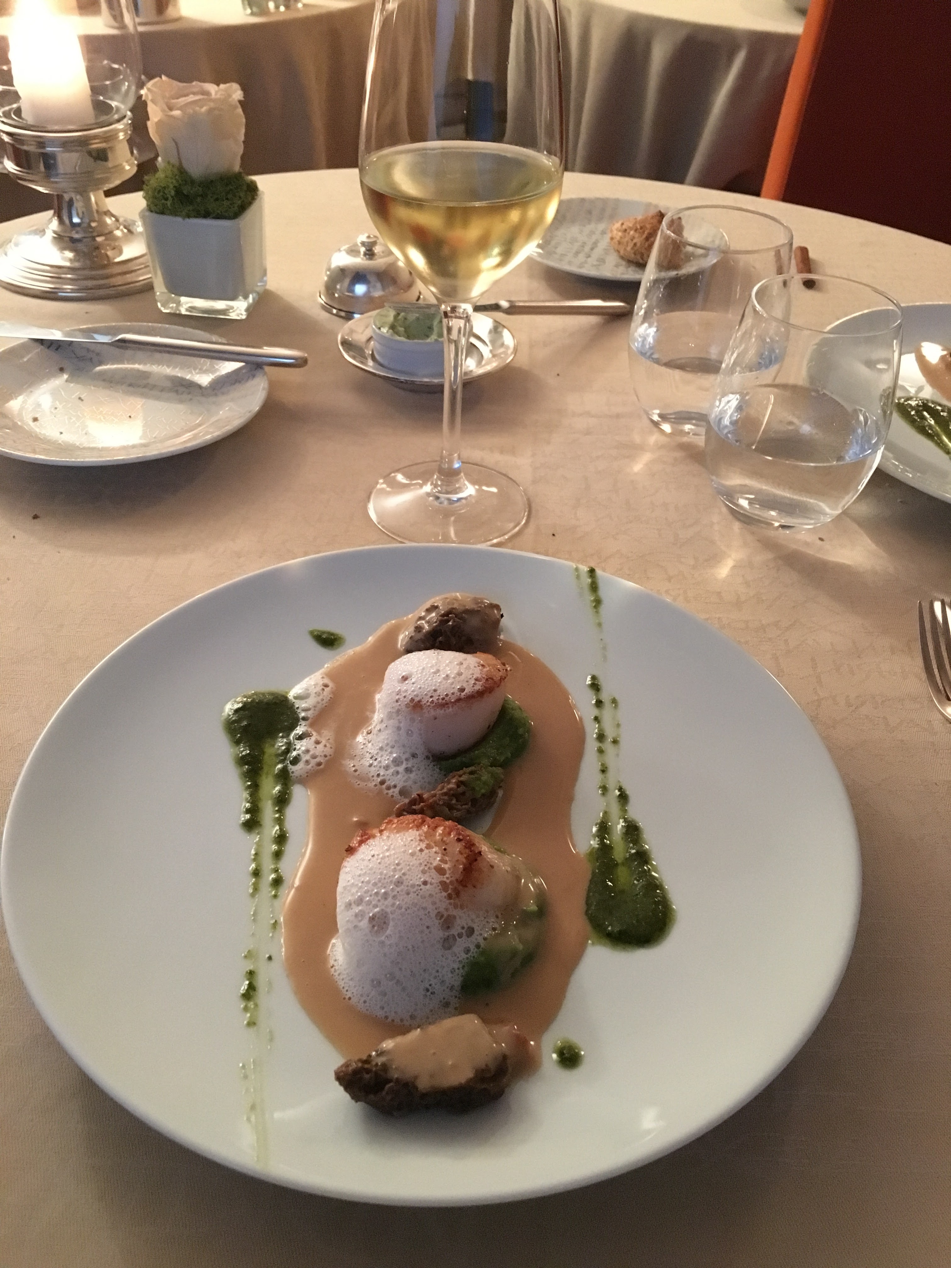 Exceptionnel, l 'essence même de la gastronomie Française au sein de sa genèse. Un sans faute du début à la fin, c'est un condensé de tout ce que vous espérez en poussant la porte d'un restaurant. Les produits sont très bien choisis, avec des cuissons parfaites , savamment accompagnes créant une gamme de saveurs subtiles qui viennent sublimer foie gras viandes et poissons. Chaque plat est une découverte, le dressage est élégant, on ne tombe pas dans le baroque fleuri , mais dans l'essentiel raffiné pour les yeux et l'extase des papilles. Les plats et les vins s'enchainent dans autant de scènes différentes, mais toujours en maitrisant, dans cette continuité, l' harmonie du goût, sans heurter, toujours créatif, élégant et exquis. Nous avions choisi le menu en cinq plats sans compter les amuses bouches, et pré dessert, Tout était suffisamment copieux, mais il n y a pas de feu d' artifice sans bouquet final, et là, dans la continuité des saveurs en version sucrée encore des surprises , de l imagination , de la créativité, des mélanges harmonieux, très beau et très bon. Remerciements au chef et à toute son équipe.