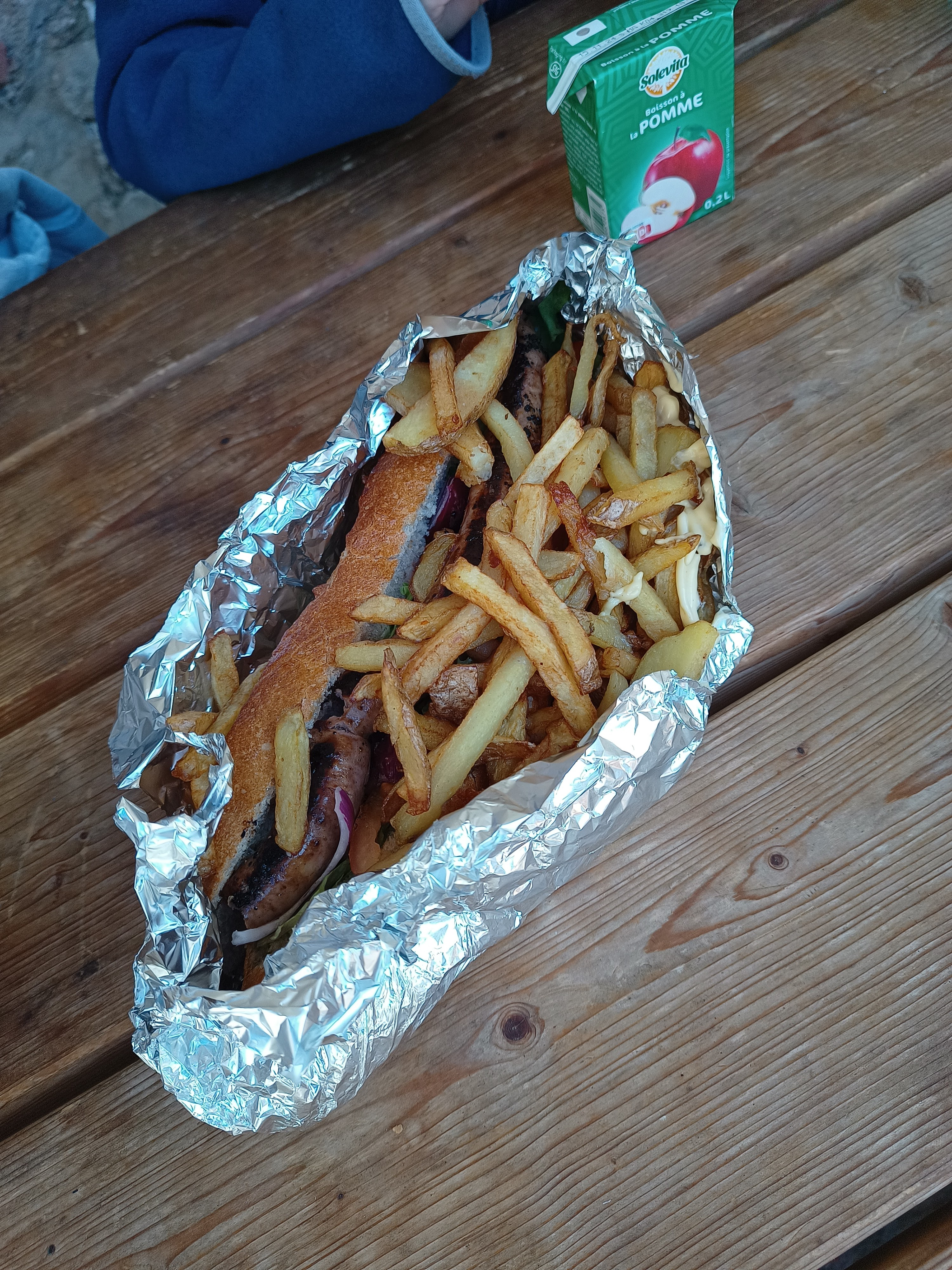 D'énormes baguettes avec des frites fraîchement préparées. Préparez-vous à ne pas manger le reste de la journée. Famille adorable. Attendez-vous à une expérience similaire à un hamburger et des frites mais avec une baguette. Délicieux et bon rapport qualité prix.