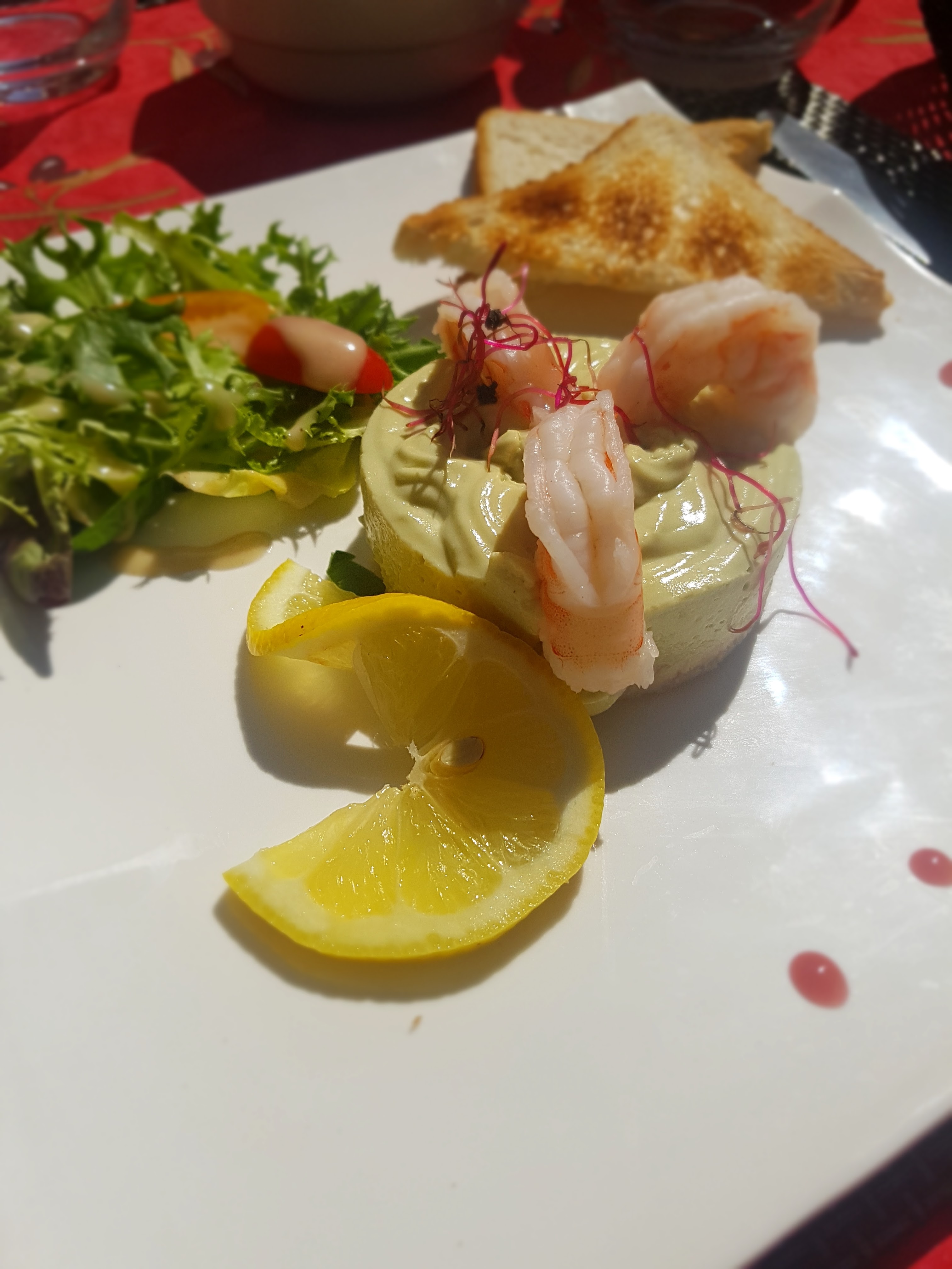 Terrasse ombragé. Tres bon menu.