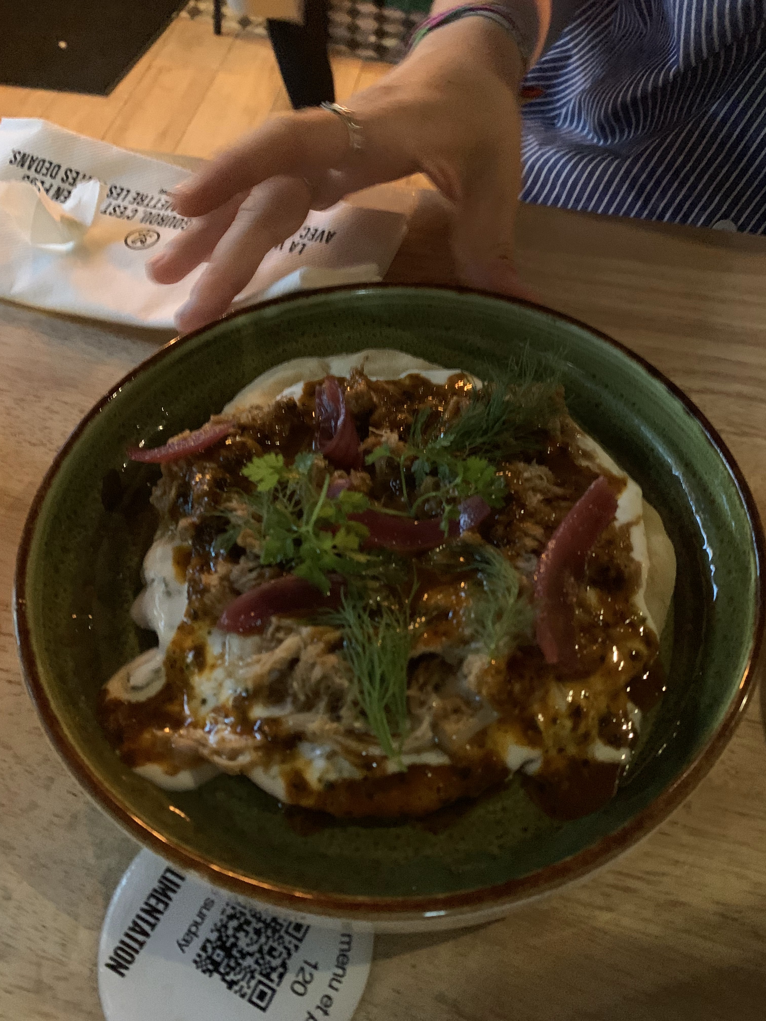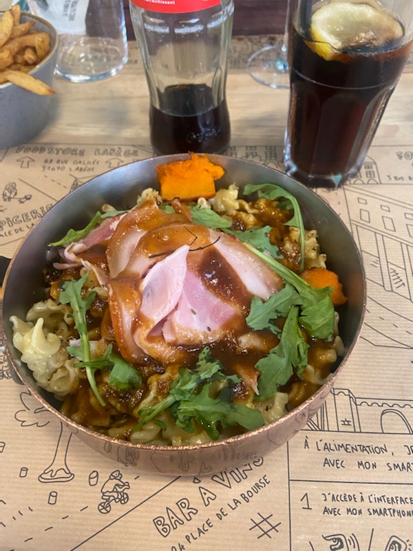 Un restaurant sympa au centre-ville de Toulouse. Il faut utiliser le QR code pas seulement pour choisir les plats, mais aussi pour commander. La présentation des plats et stylée, mais il n'y a pas de grand choix de vin pour le bar à vin.