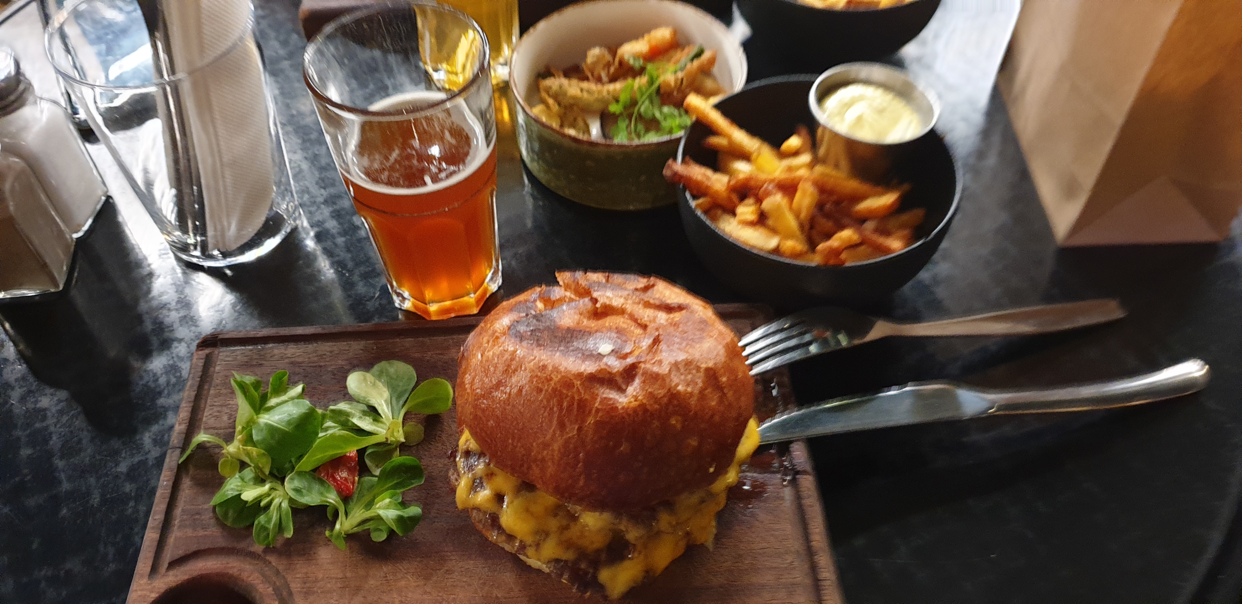 Superbe cadre, service charmant mais un peu cher pour une planche de charcuterie et des frites
