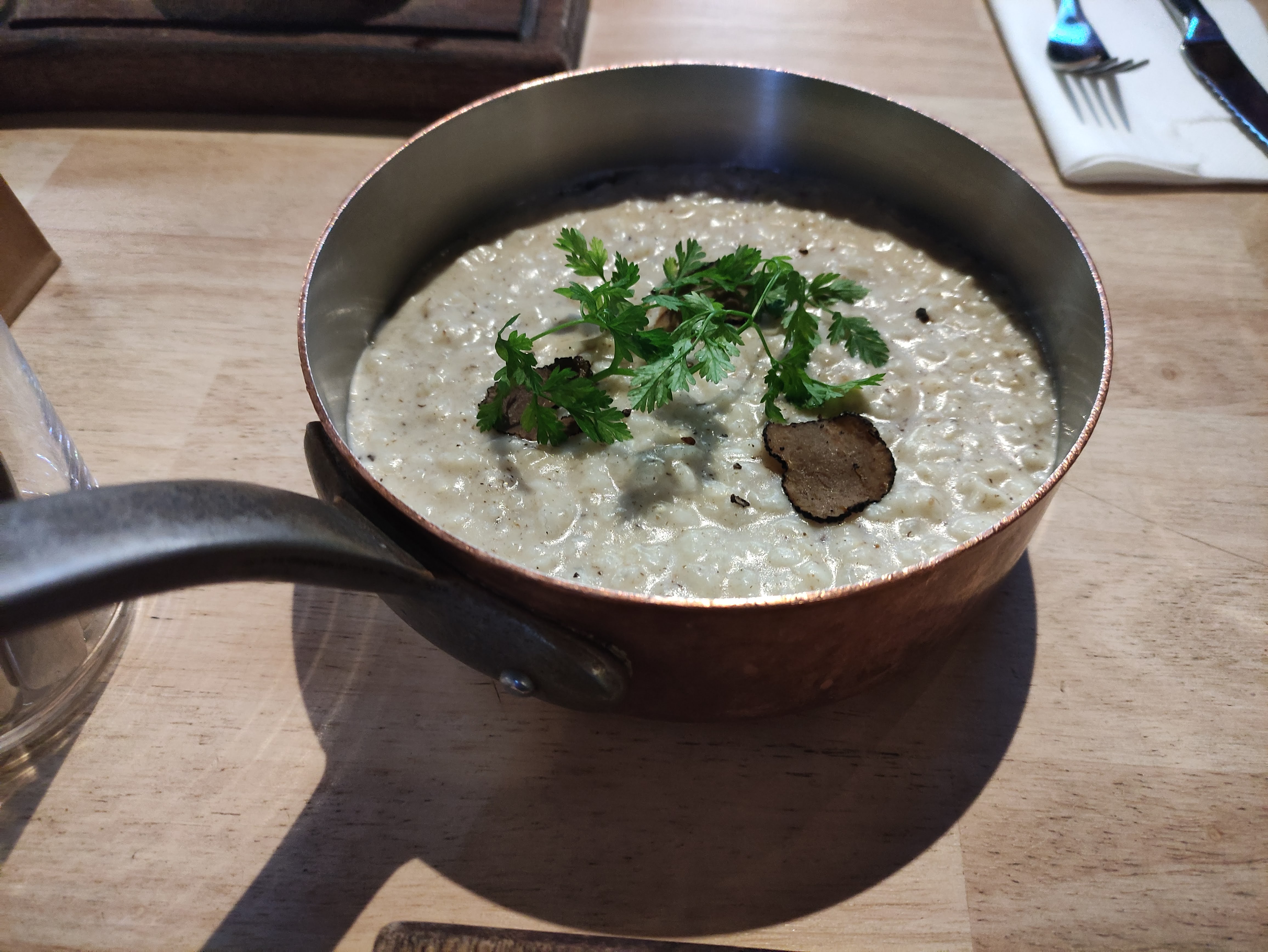 Délicieux risotto aux truffes :) magret de canard au foie gras, incroyable ! En plus, le serveur était super, la prochaine fois nous boirons du rosé avec lui. Belle expérience !