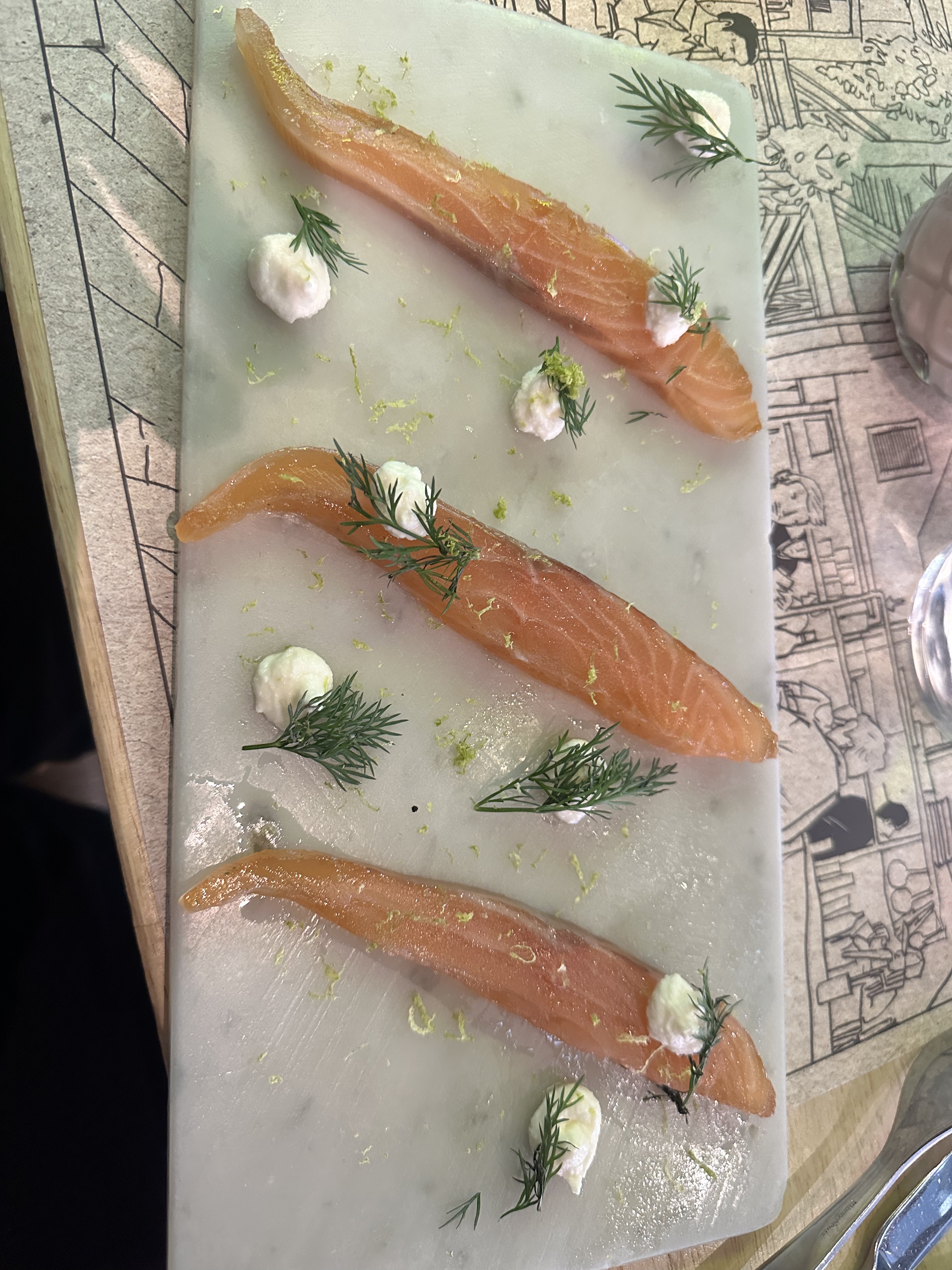 Très bonne adresse située à deux pas de notre hôtel. Accueil attentionné et charmant. Nous avons été très satisfaits de la carte de grignotages : gravlax de bœuf, saumon et betteraves, buratta, artichauts à l’ail des ours… c’était parfait.