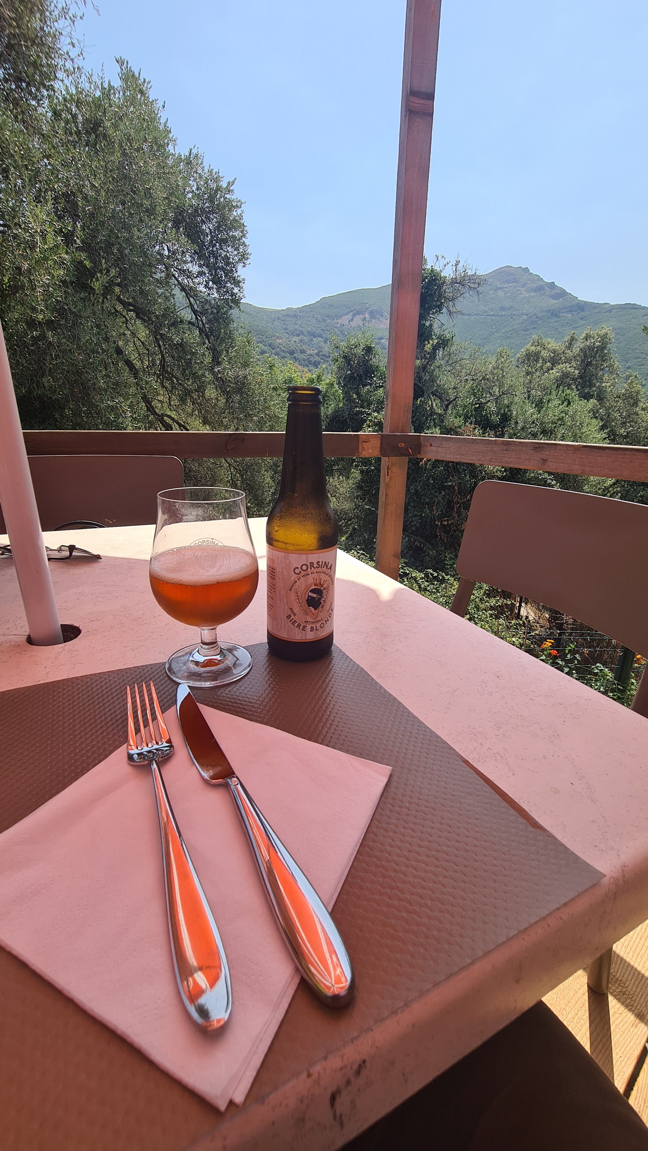 Belle experience sur la route entre Saint Florent et Bastia. Endroit splendide. La nourriture etait tres bonne. Juste le prix de la planche de charcuterie non affiché et vendue au prix fort (20e) alors que la formule entree/plat est à 21e. C est le prix d un lonzo de 300g, ... Ils proposent une biere IPA brassee par leur famille et qui est vraiment excellente... Bref, belle experience malgre tout.