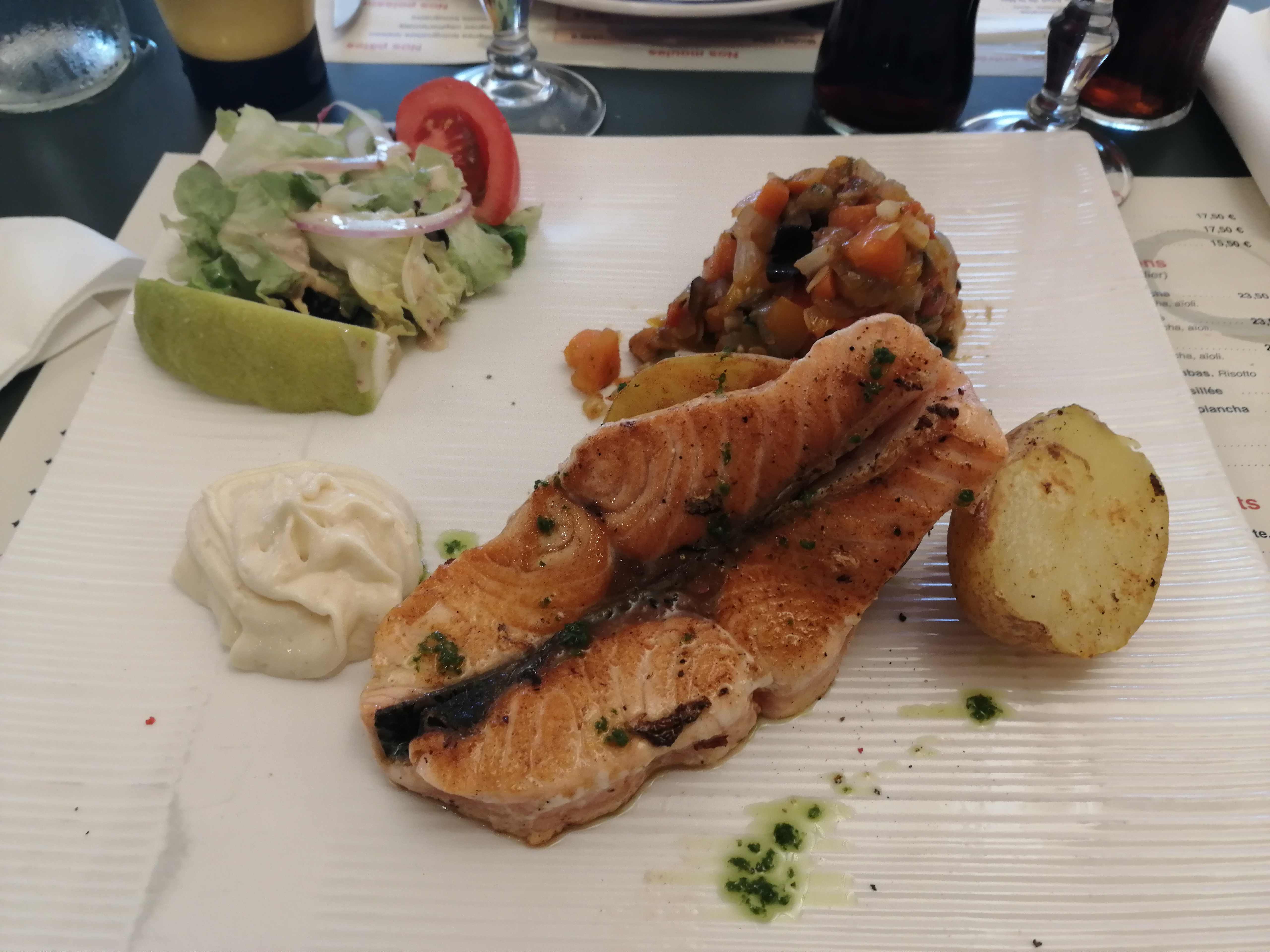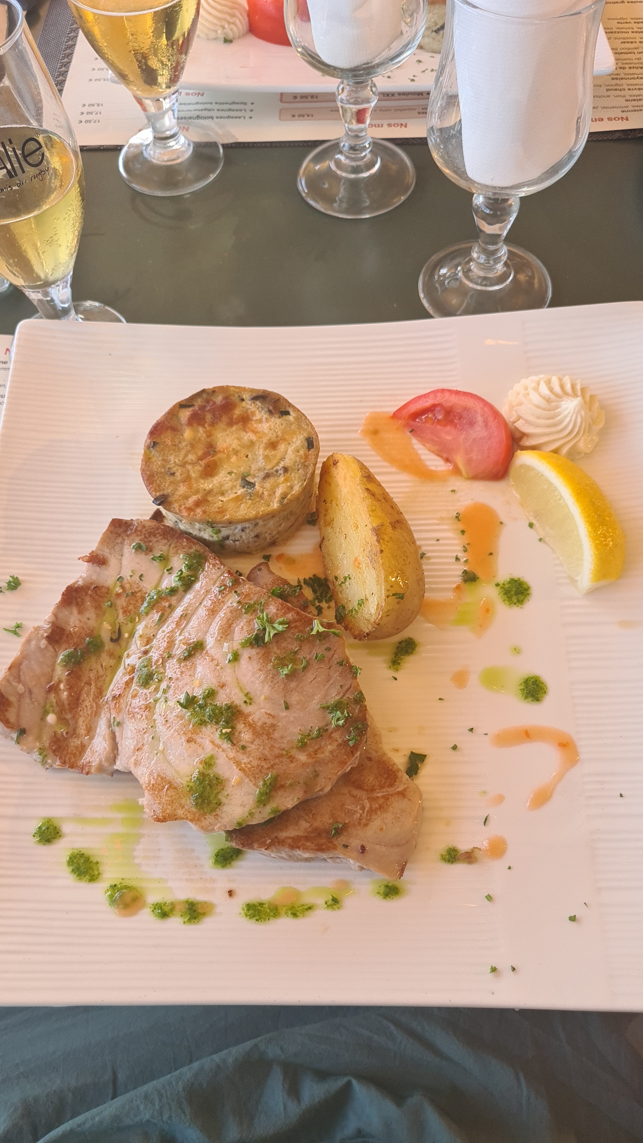 Vaisselle pas tres propre moule gratinée extra grasses servi froides. Accompagnement des gambas insipide ,escalope en bois 1point pour la vue sur le port et pour le serveur assidu mais dépité qui na pas reussi a me faire oublier la pietre qualité de la cuisine.la plus grande n'a pas terminé les frites et la plus petite les pâtes.