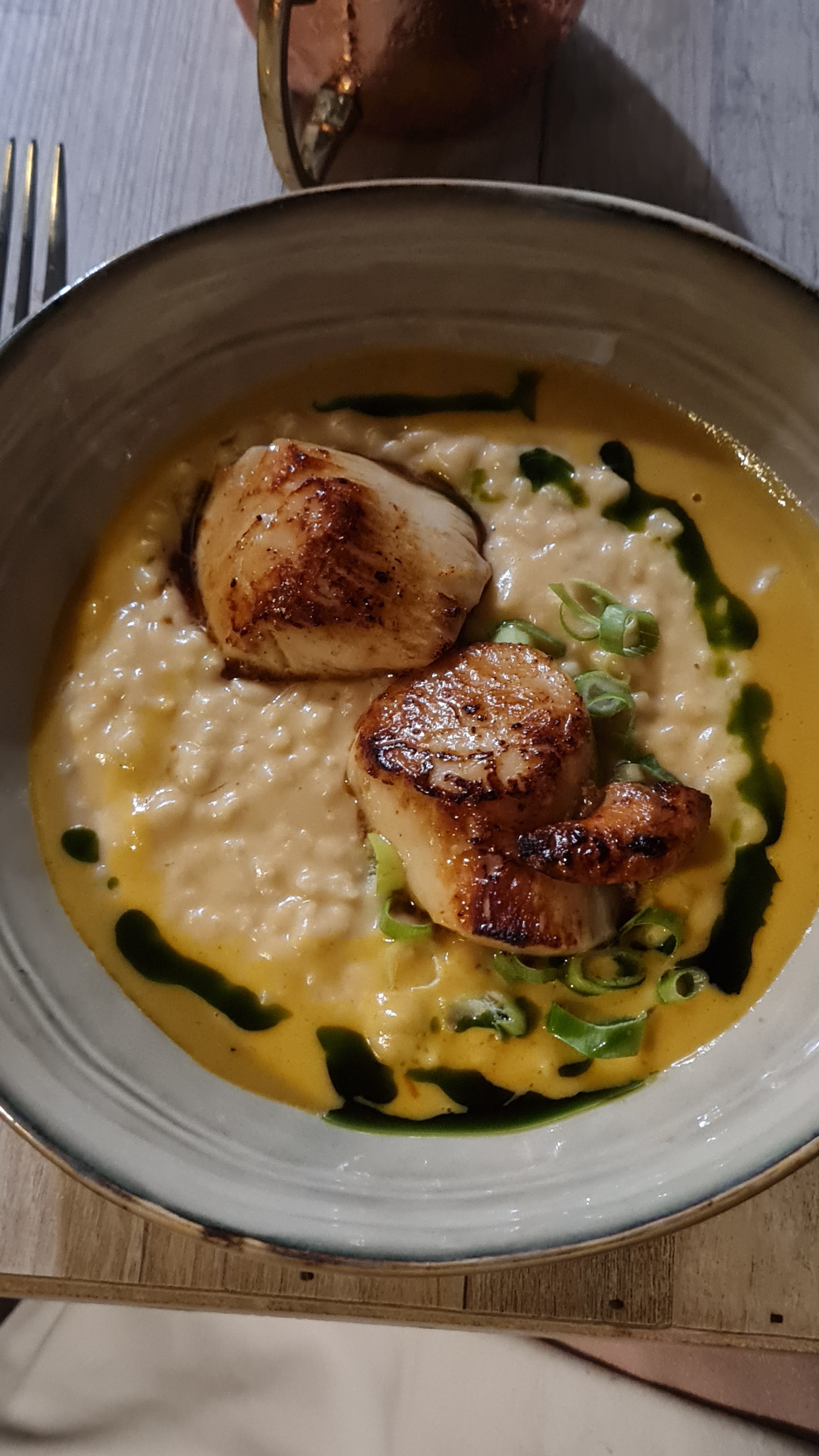 Risotto aux cèpes et St Jacques délicieux service très bien