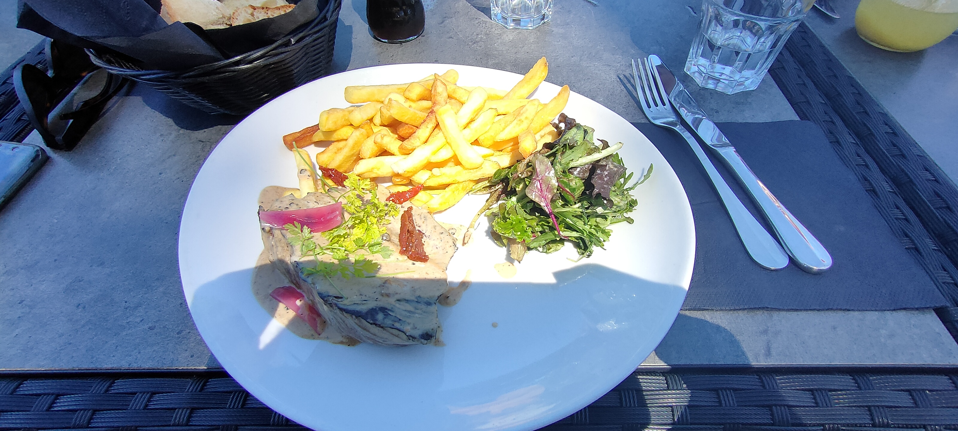 Terrasse sympa. on est complètement dépaysé et au calme. Assiette soignée et très bonnes.