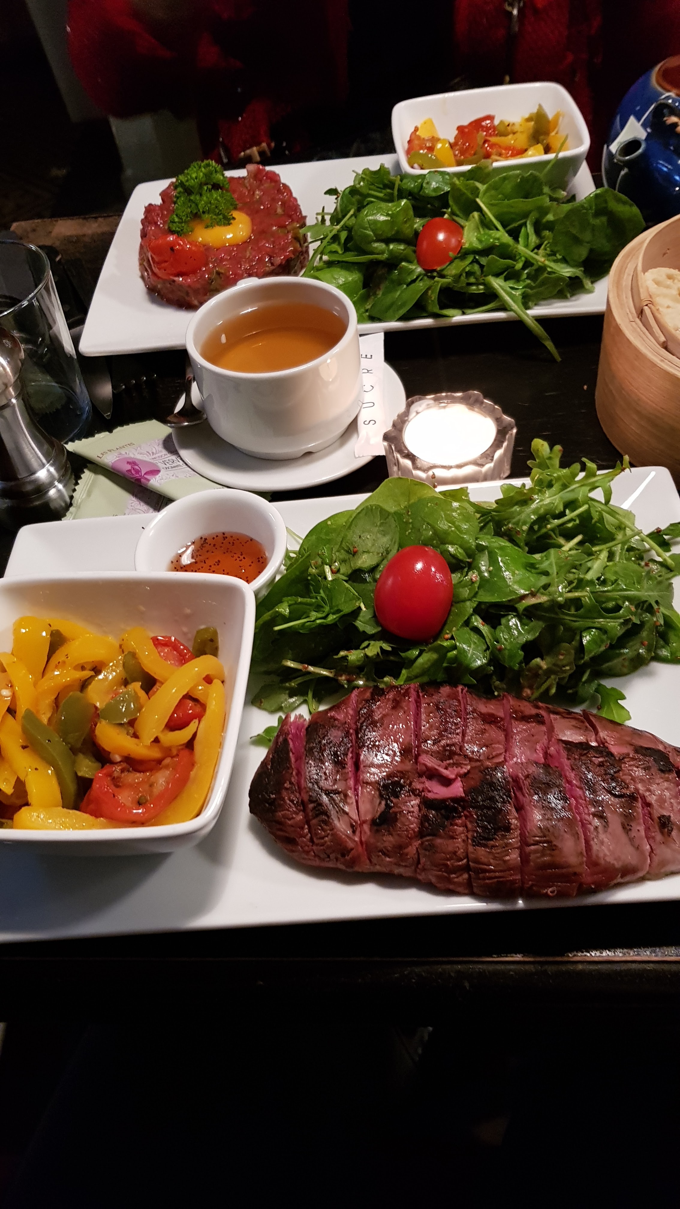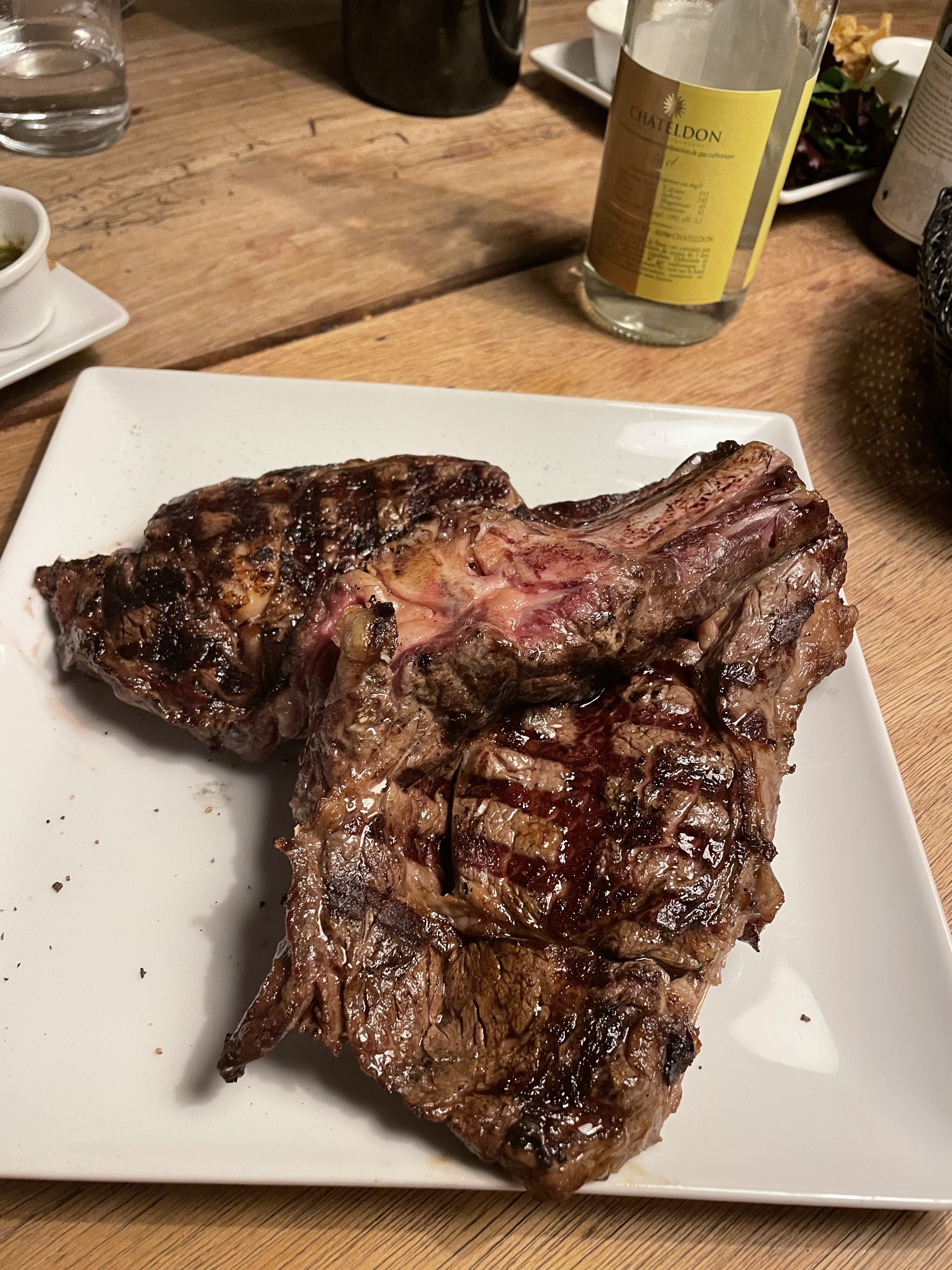 J’ai pu gouter plusieurs entrées mais il est juste top leur os à moelle! Le bon morceau de steak,un peu trop grillé parfois mais toujours super tendre! Carte de vin variée.