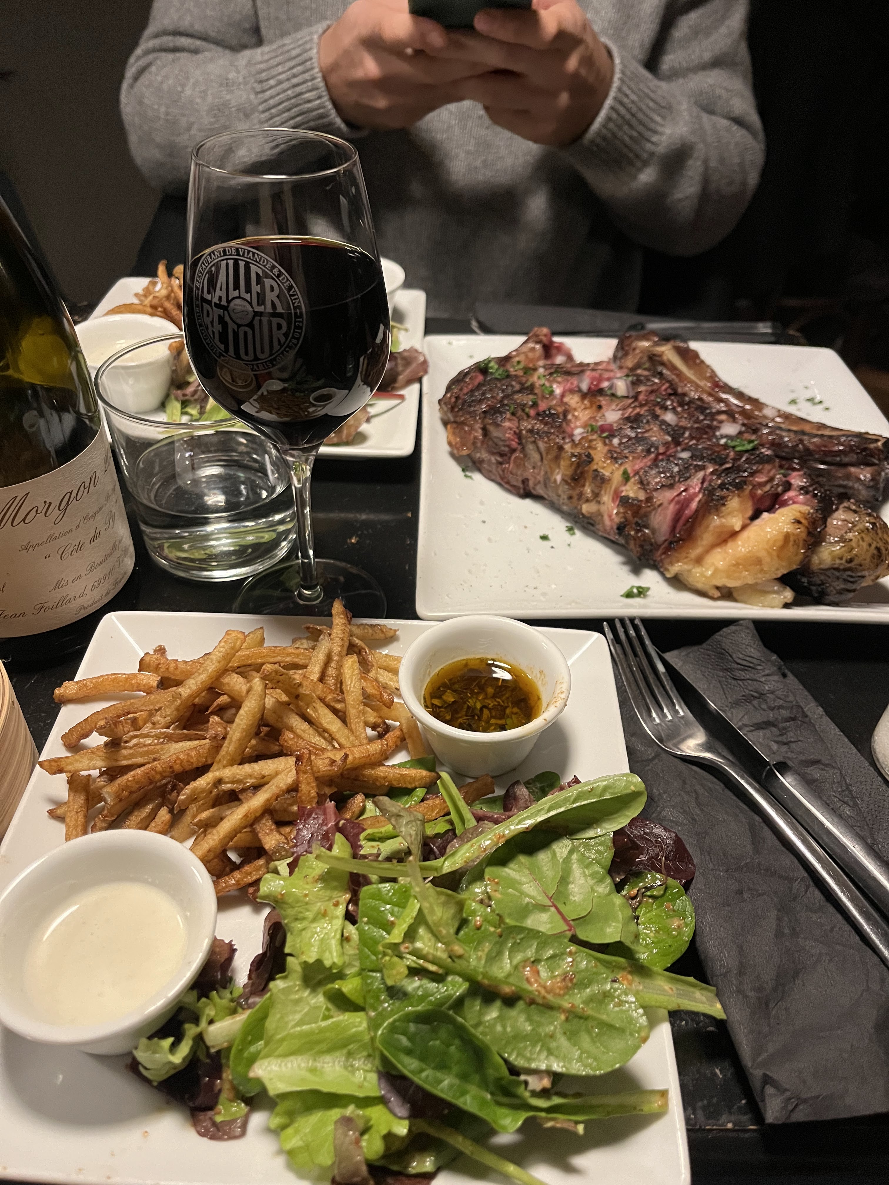 Ce restaurant est un Paris non négociable ! Oubliez toutes les recommandations TikTok et ajoutez L’Aller à votre répertoire culinaire. Mon mari et moi avons commandé le 1 kg de côte de bœuf et c'était PHÉNOMÉNAL ! La saveur du charbon de bois était parfaite et les frites maison à tomber par terre. Notre fantastique serveur nous a fait savoir que les chefs ont tendance à cuisiner des steaks plus rares en France, alors gardez cela à l'esprit lorsque vous précisez comment vous souhaitez que votre steak soit cuit. 10/10 !