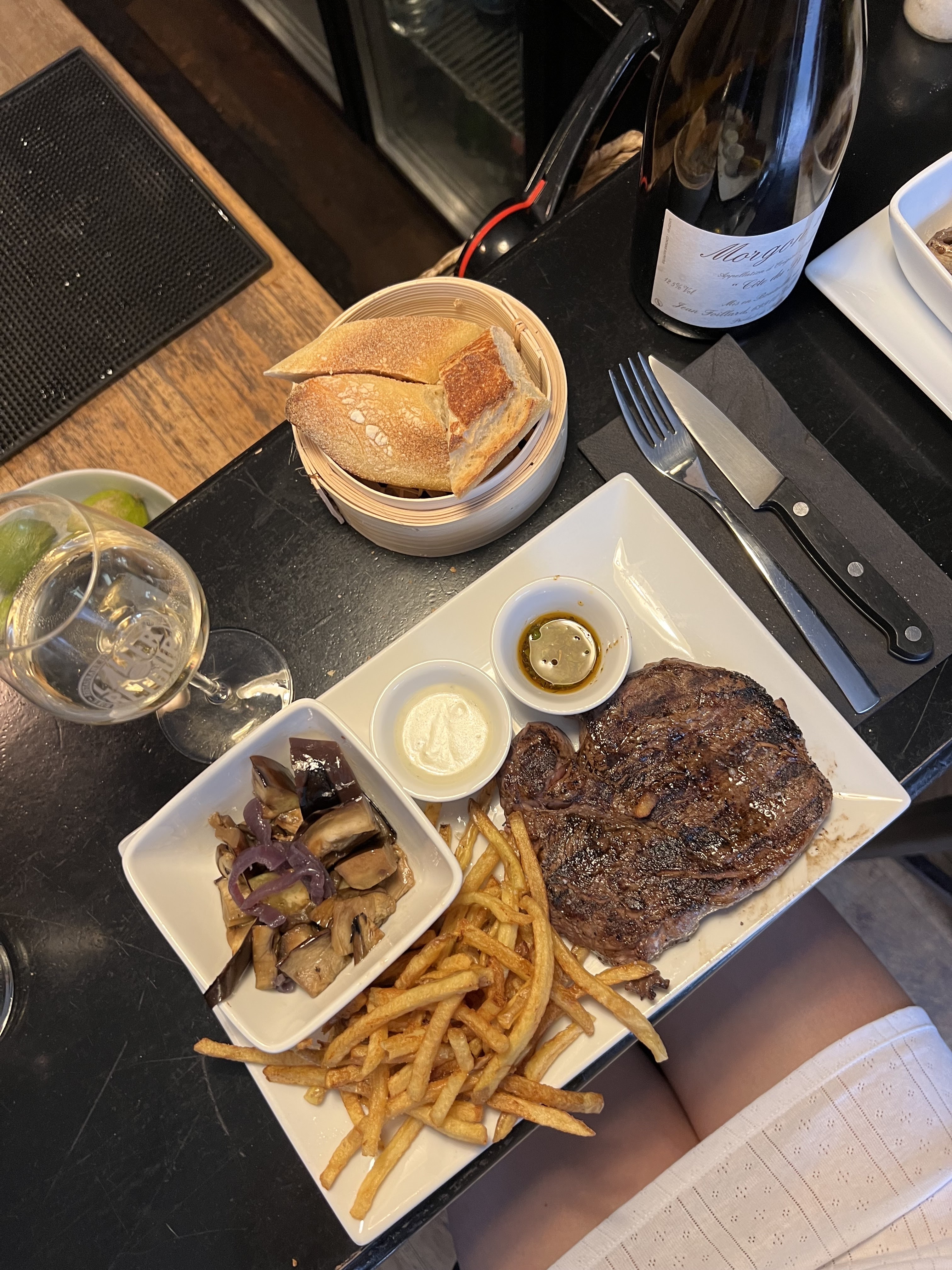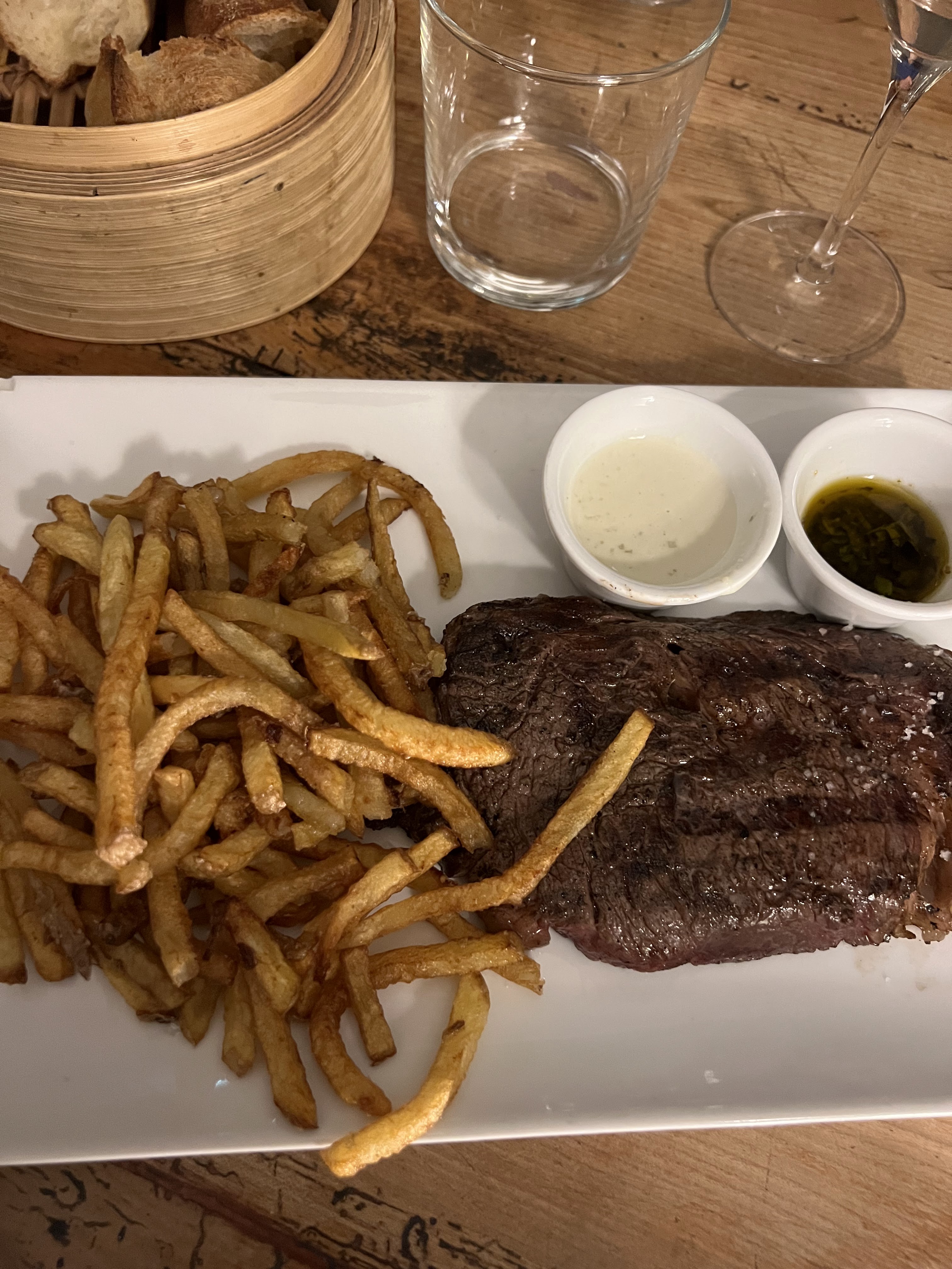 Un espace cosy et accueillant. Une agréable introduction aux escargots et à la moelle osseuse pour les novices en matière d'escargots et de moelle osseuse. Les steaks étaient très bons (meilleurs qu'ils n'en ont l'air) avec des frites légèrement grasses. Dans l'ensemble, c'est une expérience très positive, même si mon partenaire était contrarié parce que j'avais plus de frites que lui.