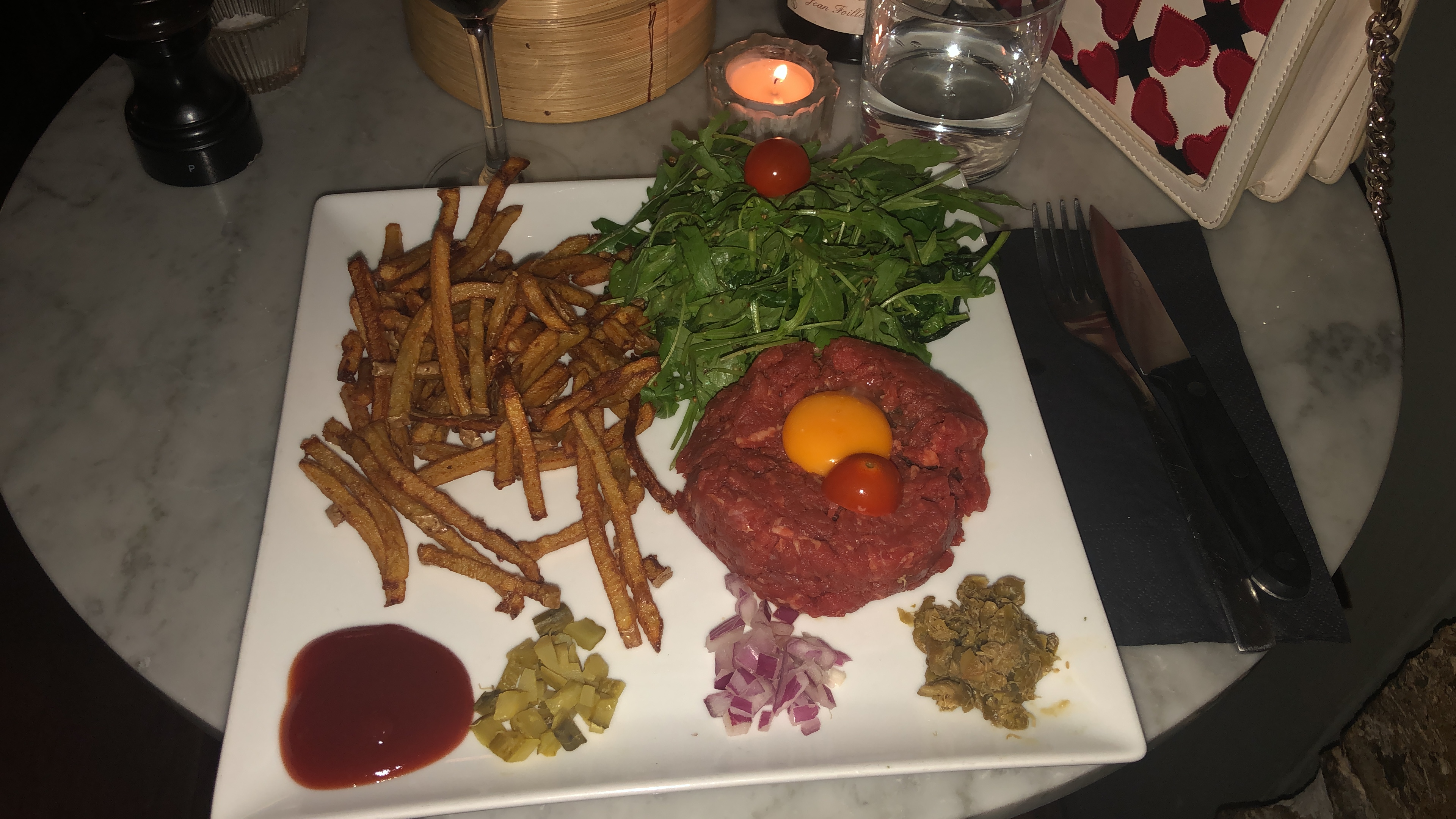 Endroit très mignon et petit. La nourriture était vraiment bonne car j'avais le tartare et ce serait à la hauteur. Des prix très raisonnables mais certaines choses sont extrêmement chères. Dans l'ensemble très bien