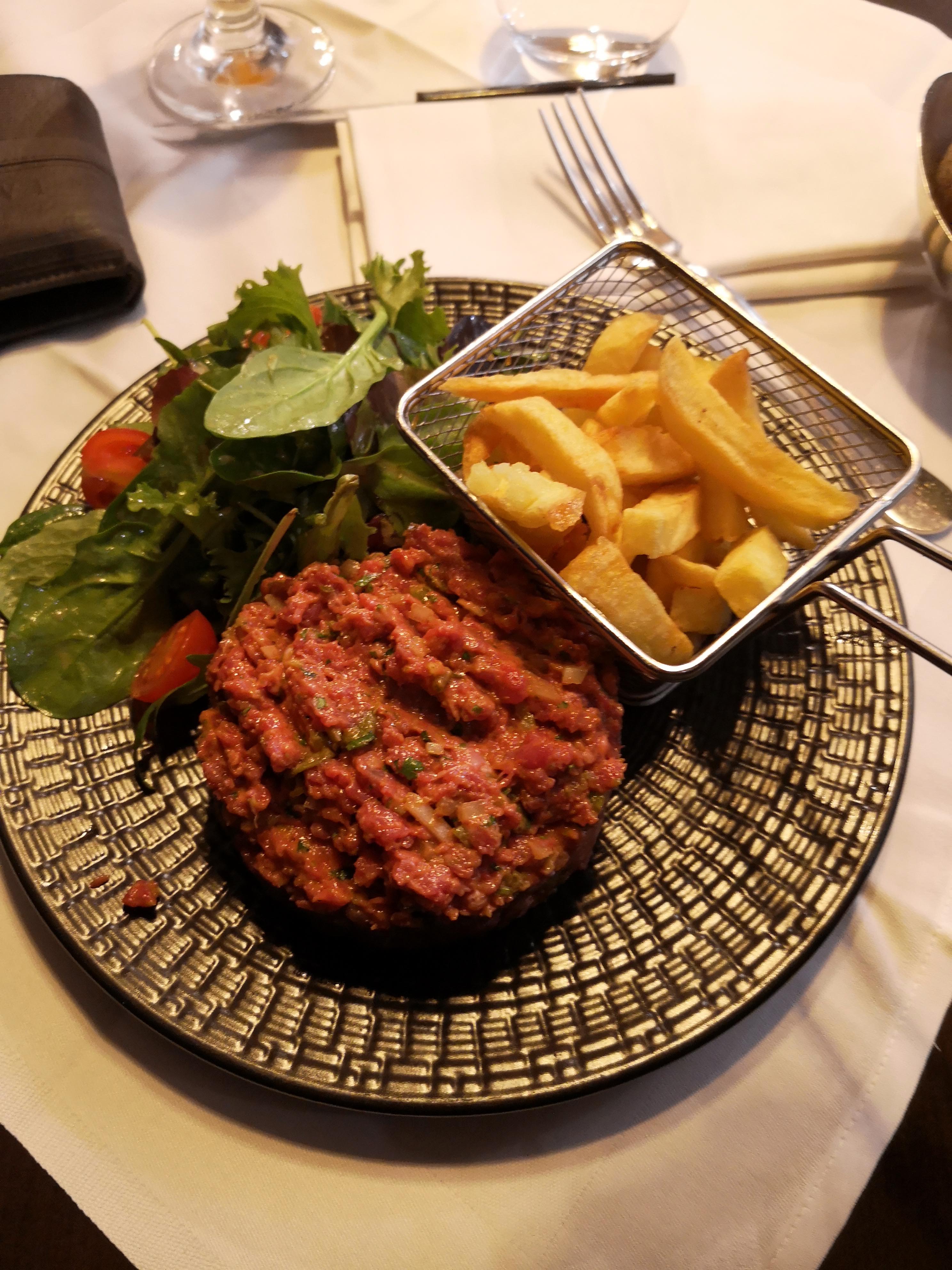 un bon steak tartare coupé au couteau de 300 gr a 7 h du mat ..... AU TOP ET SERVICE TOP JE RECOMANDE