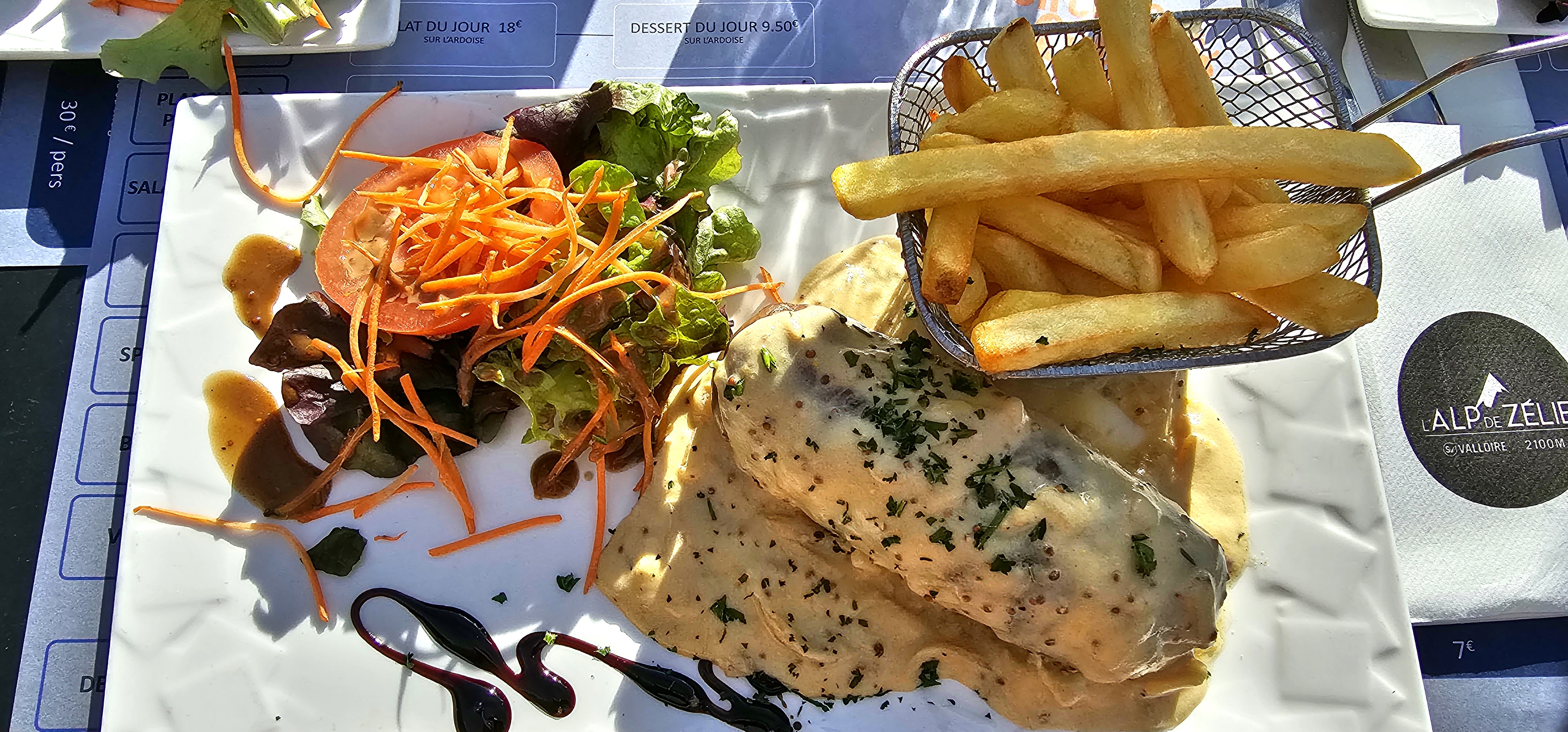 Tartare et profiteroles : très bons. Personnels accueillants et sympathiques. Beau site. Seul point noir : choisissez bien votre table : j etais à l entrée de la terrasse et ai baigné dans les odeurs de fritures graillons pendant tout le repas. A une autre table sur le retour de la terrasse vers Valloire cela aurait été 5 étoiles.