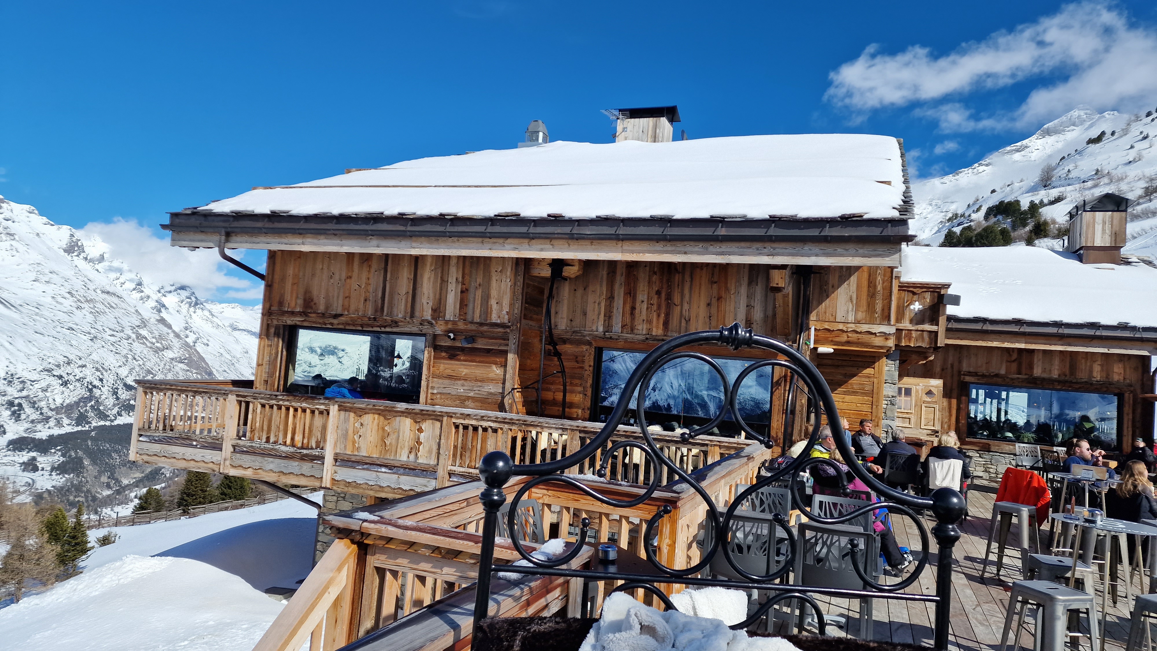 Deuxième fois que nous venons manger, la première fois en terrasse,très agréable, super vue, service rapide et serveuses souriantes et soucieuses du client, plats copieux, tarifs d'un resto d'altitude, la deuxième visite nous avons été installés à l'intérieur ( arrivés en plein rush sans résa) car plus de place en terrasse (victime du succès d'une magnifique journée ensoleillée) salle très bien décorée, de belles ouvertures sur les massifs de la Vanoise, service rapide même en plein rush,carte très bien montée, bref un déjeuner au top, n'hésitez pas à vous arrêter (petit message aux gérants, si vous continuez avec cette qualité de service et de propreté vous allez cartonner, au plaisir de revenir)
