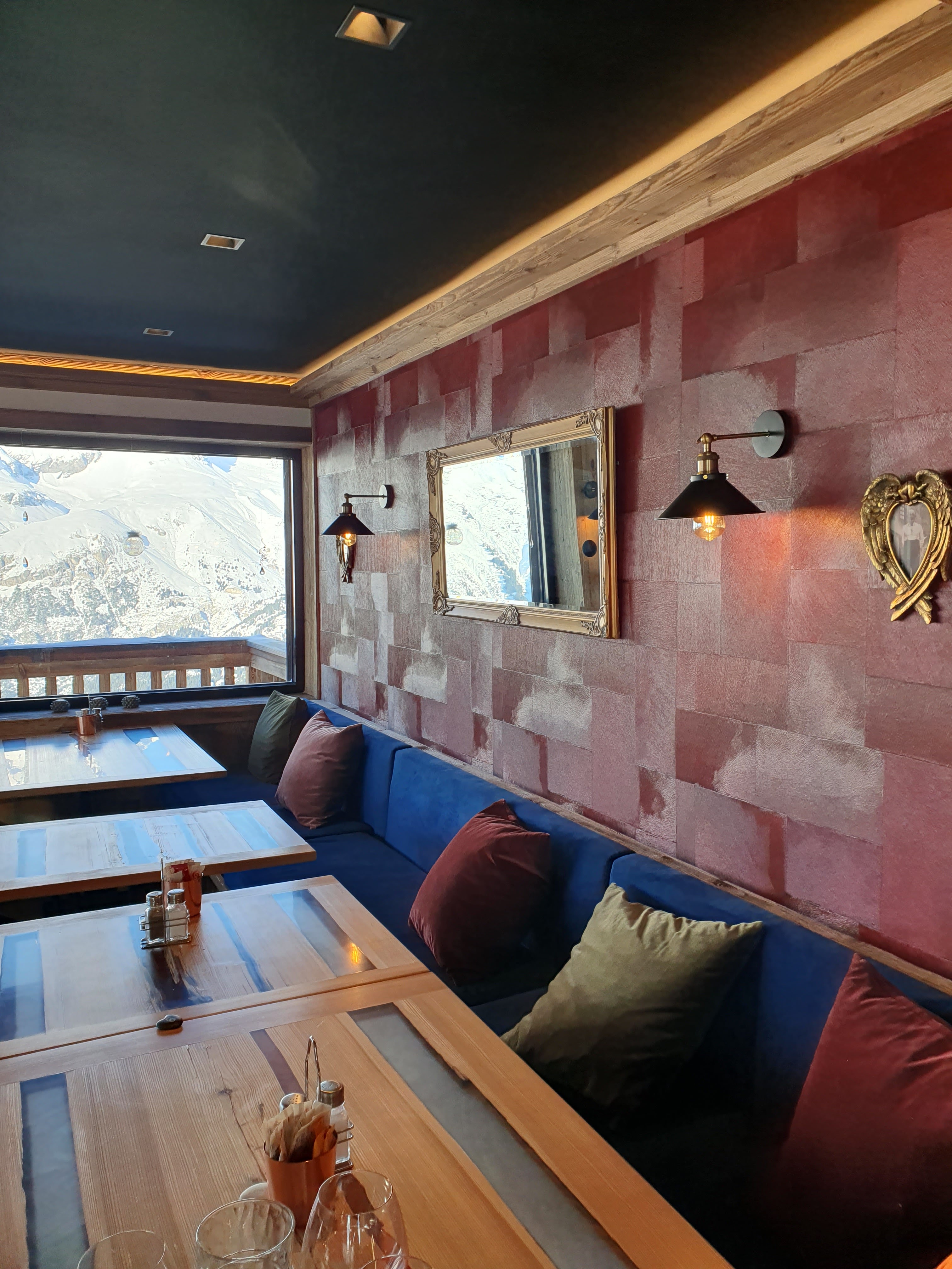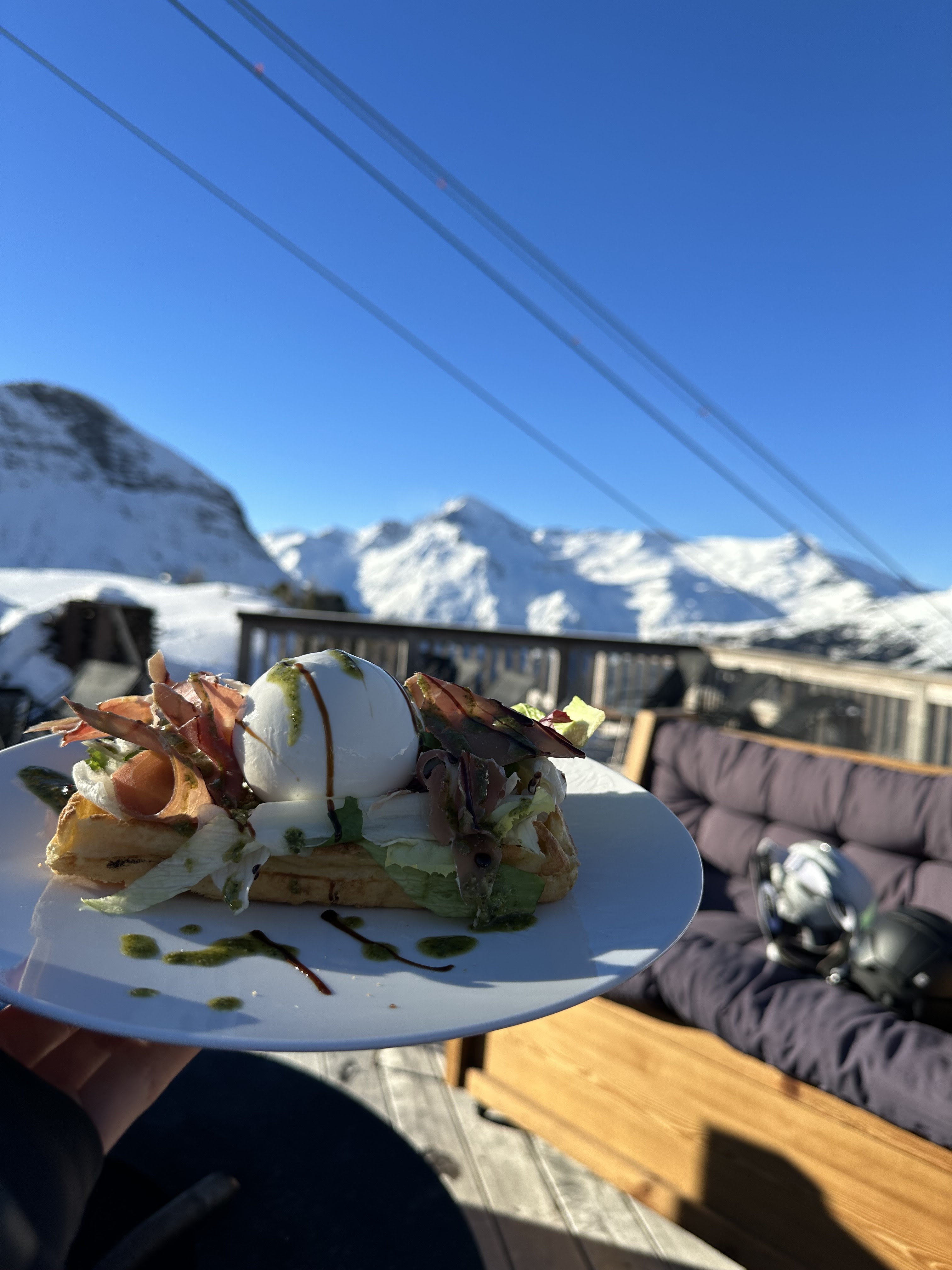 Un emplacement au bord des pistes, un restaurant très moderne et des serveurs super sympathique. De plus, la nourriture était franchement délicieuse et mention spécial pour le dessert : un tiramisu caramel et speculoos absolument succulent, bref super !