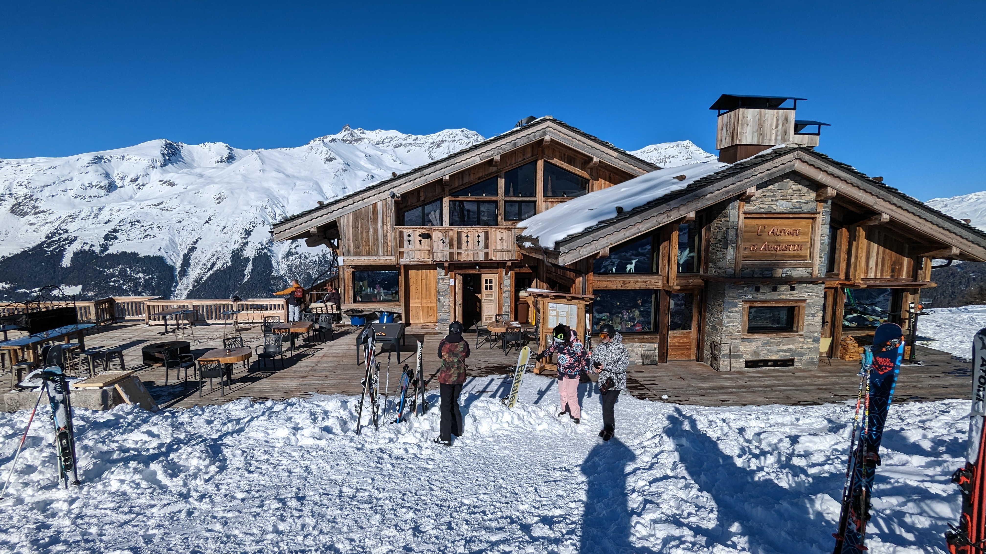 Pour la deuxième année, nous avons choisi l'alpage d'Augustin pour la pause repas méridienne durant notre semaine au ski. Table de 8: service rapide, de qualité, tout le personnel aux petits soins, serveuses adorables, toujours souriantes. Une carte variée et un plat du jour de qualité. Adaptation ++ pour nos difficiles (merci pour le burger sans rien ☺️). Prix un peu plus cher (quelques euros) que d'autres restos skis aux pieds, mais la qualité des plats, le confort de la salle, la prestation les valent bien. Une bonne fin de saison à tous et à l'année prochaine.