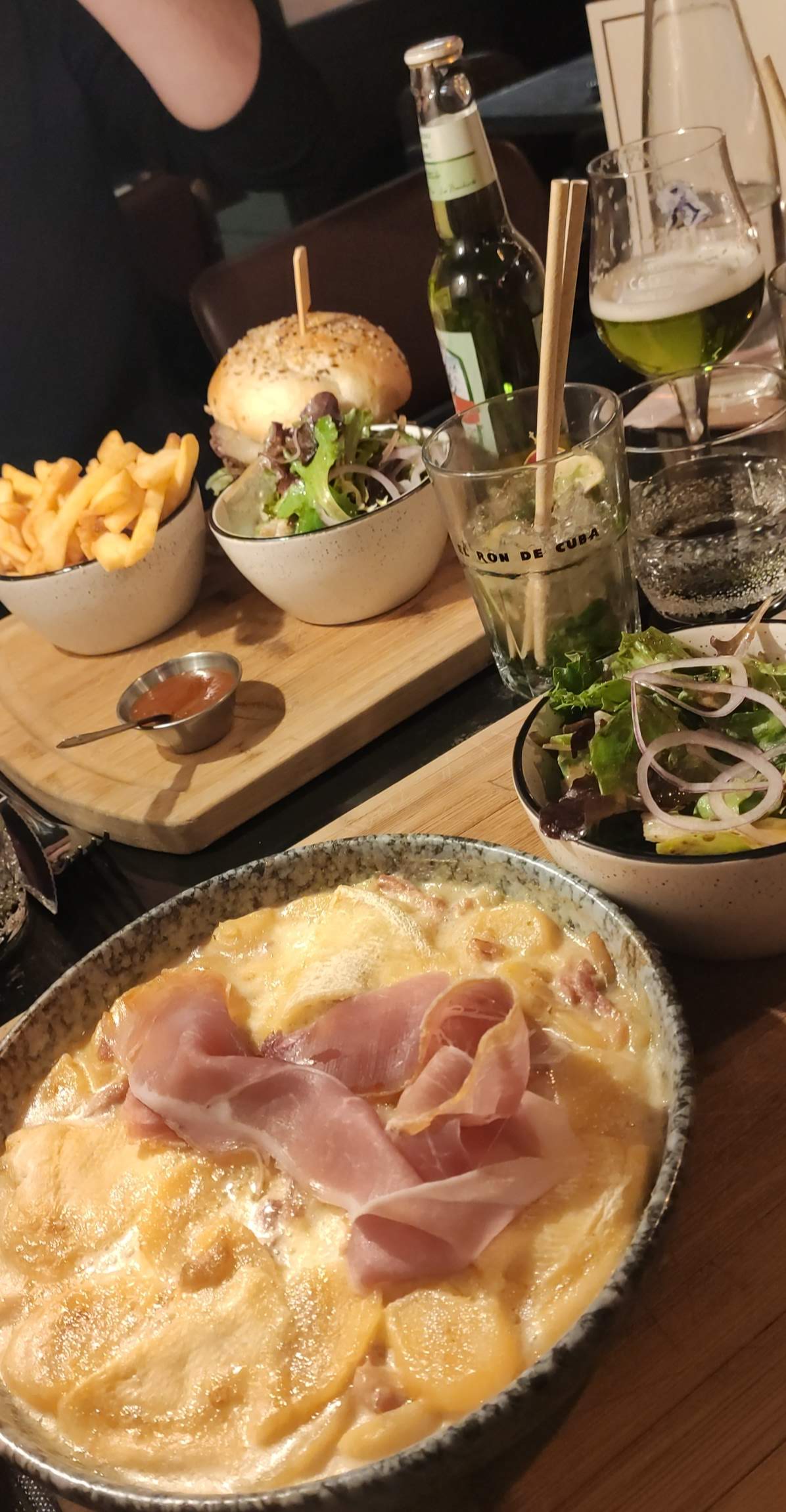 Tout était délicieux: : les pizzas, la tzrtiflette, les salades, la viande… et le personnel est si gentil! Super endroit, super ambi, courrez-y!