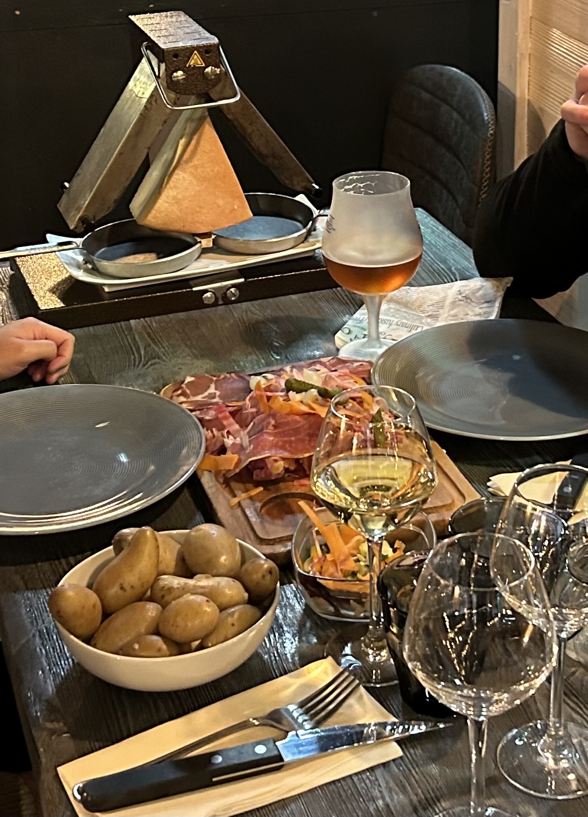 Tout était parfait, de l’apéro au dessert! Une raclette au top, l’idée du sac à patate est géniale, la charcuterie est fraîchement et finement coupé, le fromage à raclette fermier EXCELLENT. Ambiance musicale à l’appréciation des serveurs ce qui est un + avec une pointe de festivité qui ne va brusquer les plus calmes. Nous avons été ravis de notre dîner et je recommande ++
