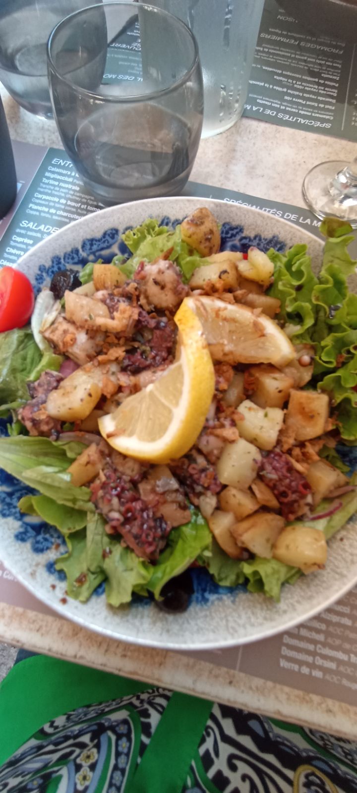 Plats juste excellents ! Le veau aux olives délicieux et la salade aux poulpes à découvrir 👍 Service rapide par personnes très sympas 😉 Merci 😃