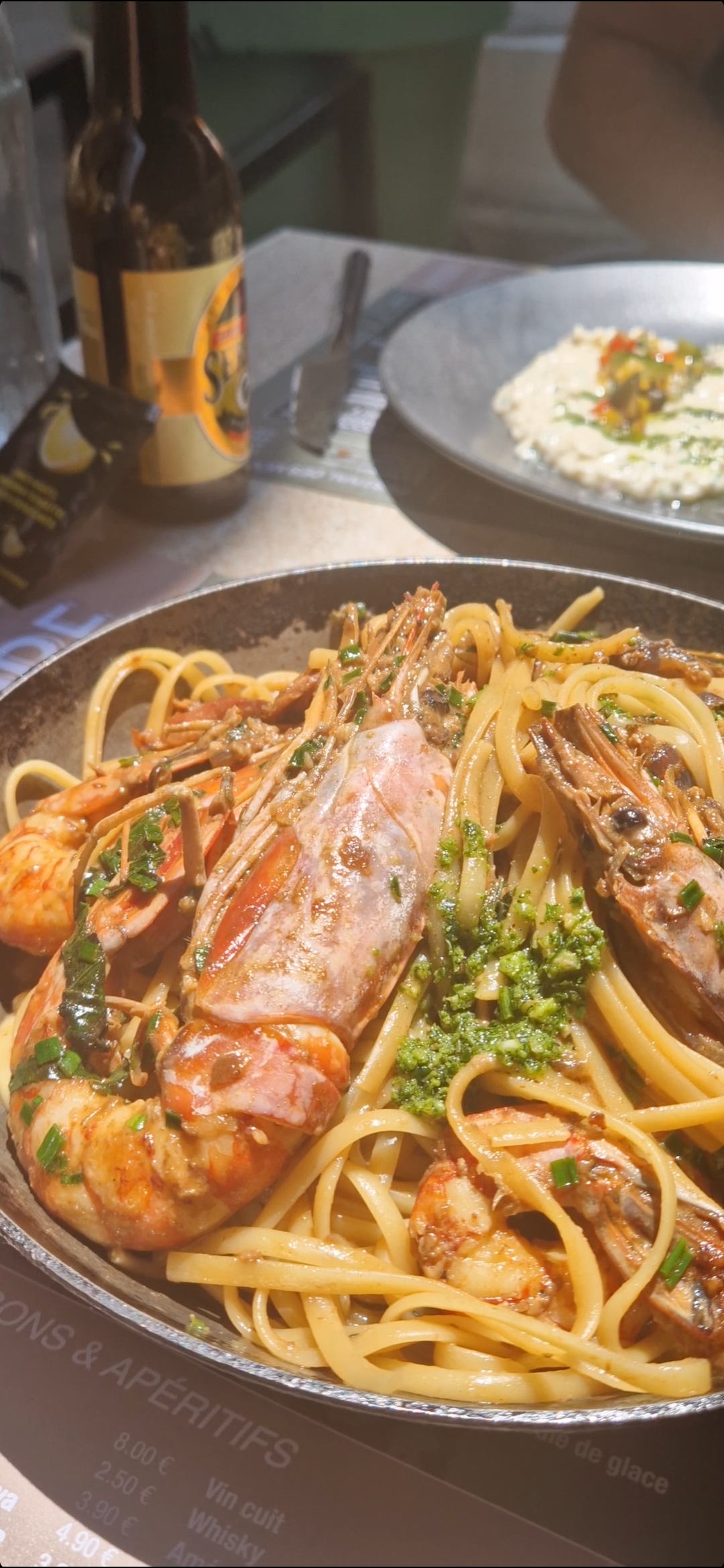 Nous adorons les pâtes aux gambas à la sauce cap corse !!!!!! Bravo aux cuistots et aux serveurs très sympathiques 👍👍👍