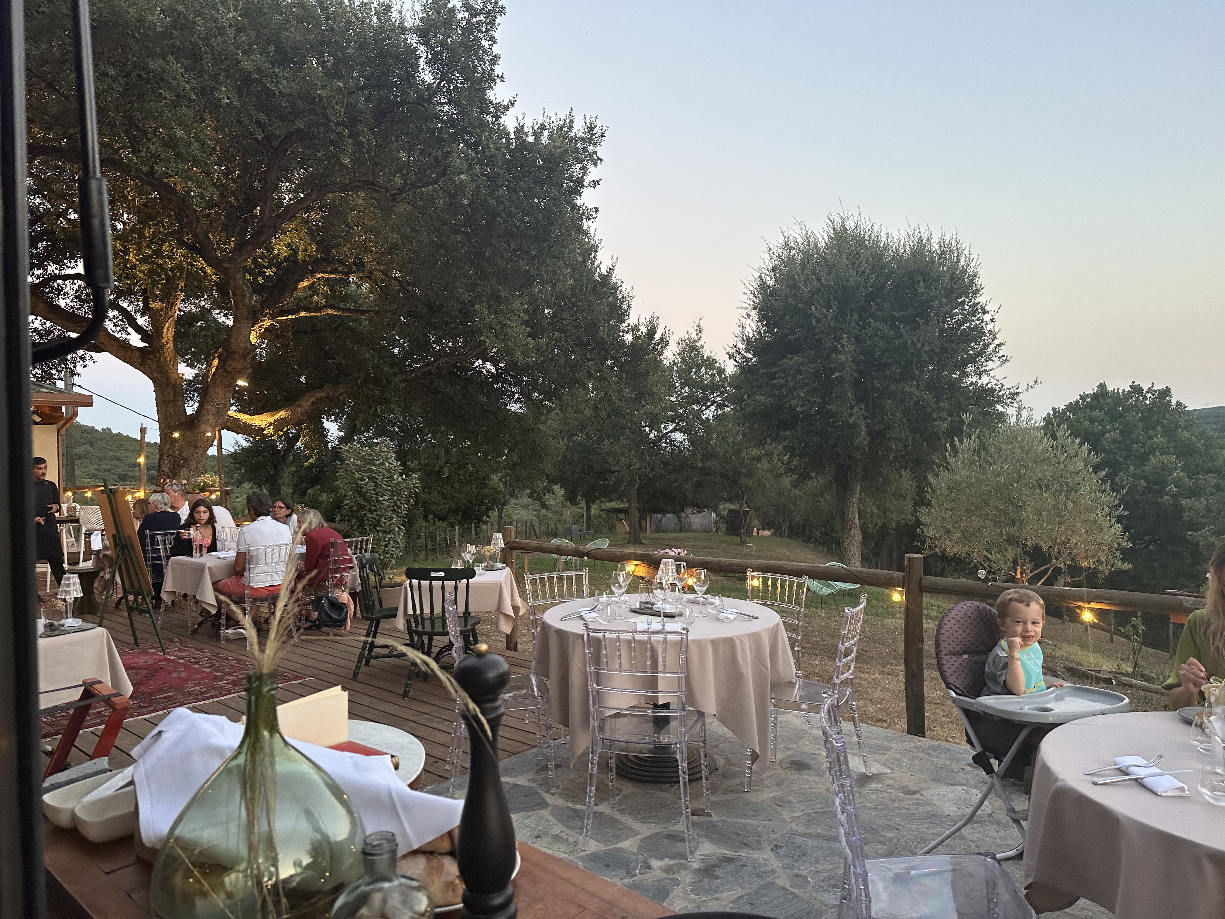 Délicieux dîner, sophistiqué,étonnant a partir d articles simples et locaux.une imagination culinaire riche et surprenante tout en restant des les standards méditerranéens,mozza crémeuse aux crudités etc...superbes.et emplacement rêve,une salle a manger sur une terrasse au calme.super super