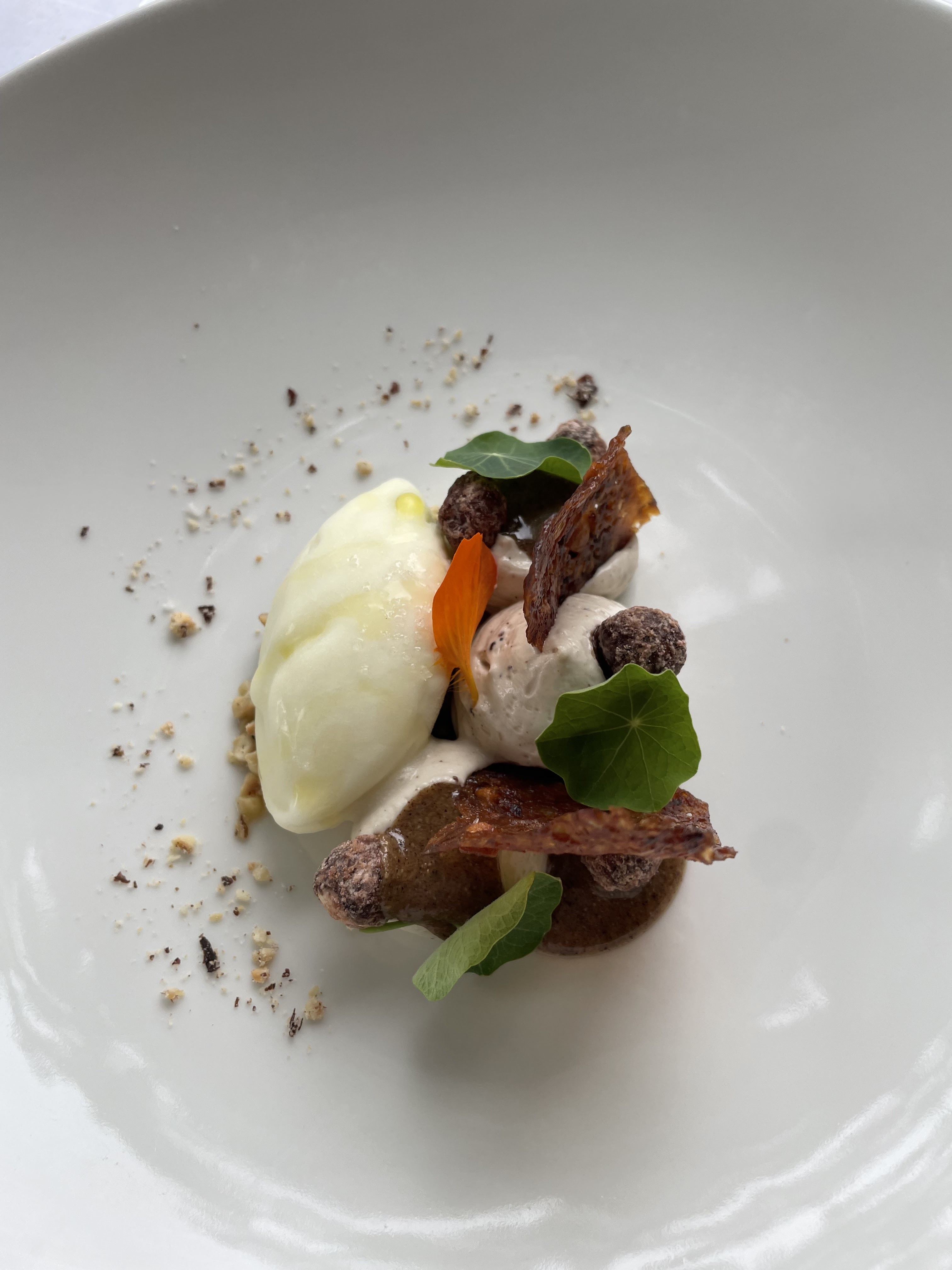 un lieu magnifique et une deco fait avec gout , la nourriture est superbe et tres minutieuse mais le service est un peu moins a la hauteur (j’avais demandé du vin et le serveur a totalement oublié de me le servir, pas top pour un semi-gastro )