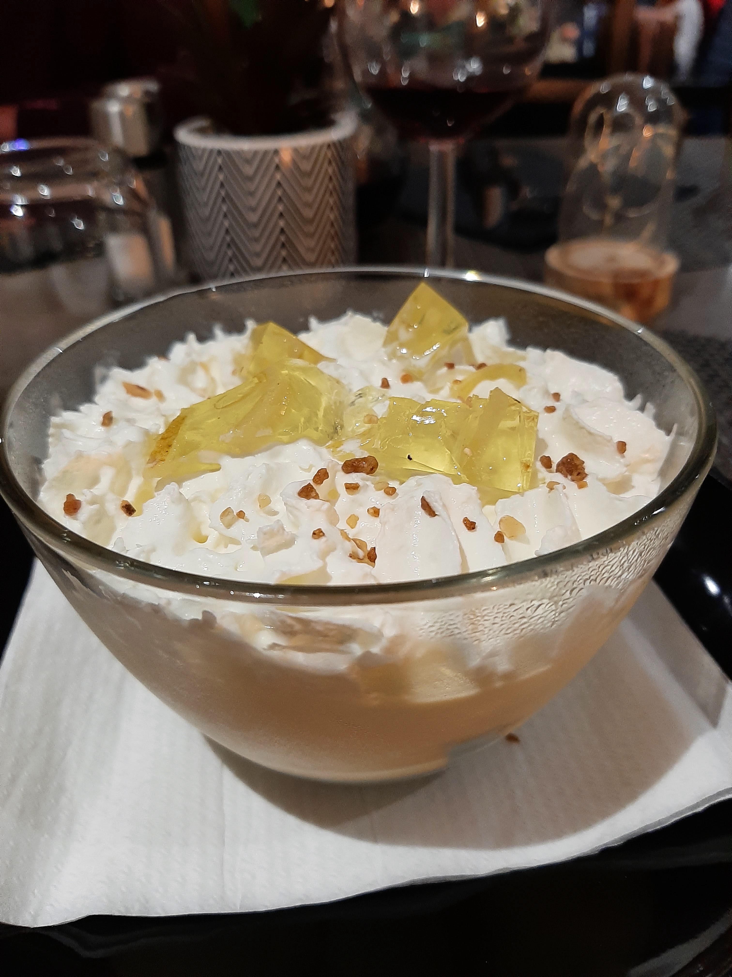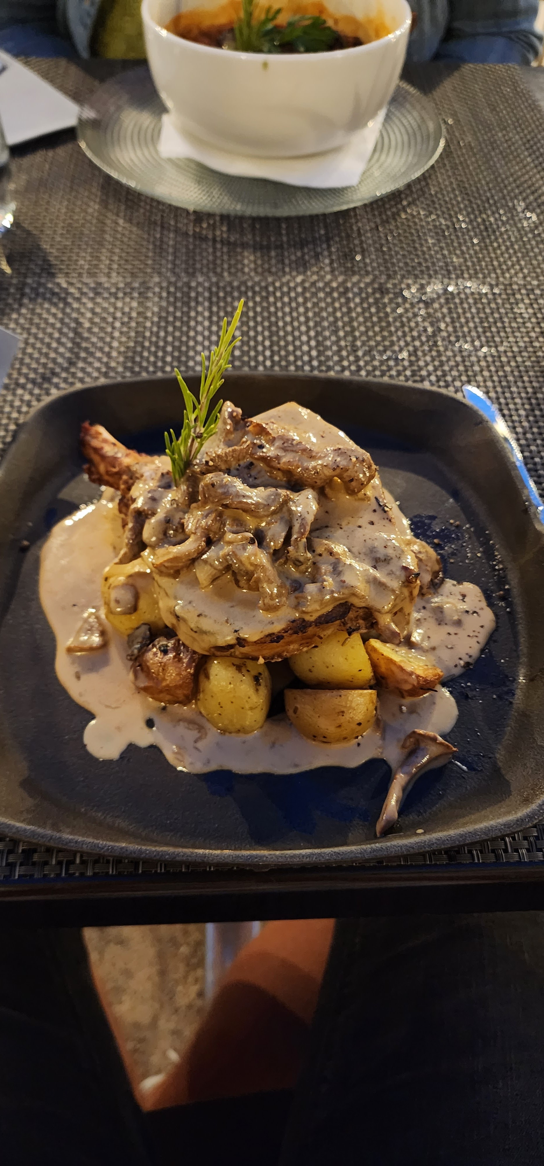 J'ai rarement mangé aussi bien dans un restaurant La cuisine y est faite avec passion et amour du métier et tout est fait maison... Le service est impeccable, le patron et la serveuse ont été de vrai perles avec nous. Nous avons pris un camembert au four au miel et oignons confits servi avec des pommes grenaille et pancetta (une régalade, je ne vous explique même pas !) Pour ma part, des raviolis farcis à la joue de bœuf et jus de daube Pour le chéri, un filet mignon de porc sauce crémée girolles et pdt grenailles (une tuerie !) Et pour finir en apothéose, un crumble aux fruits rouges et mascarpone et un baba au rhum à se damner Alors si vous passez dans le coin n'hésitez pas une seconde allez-y !