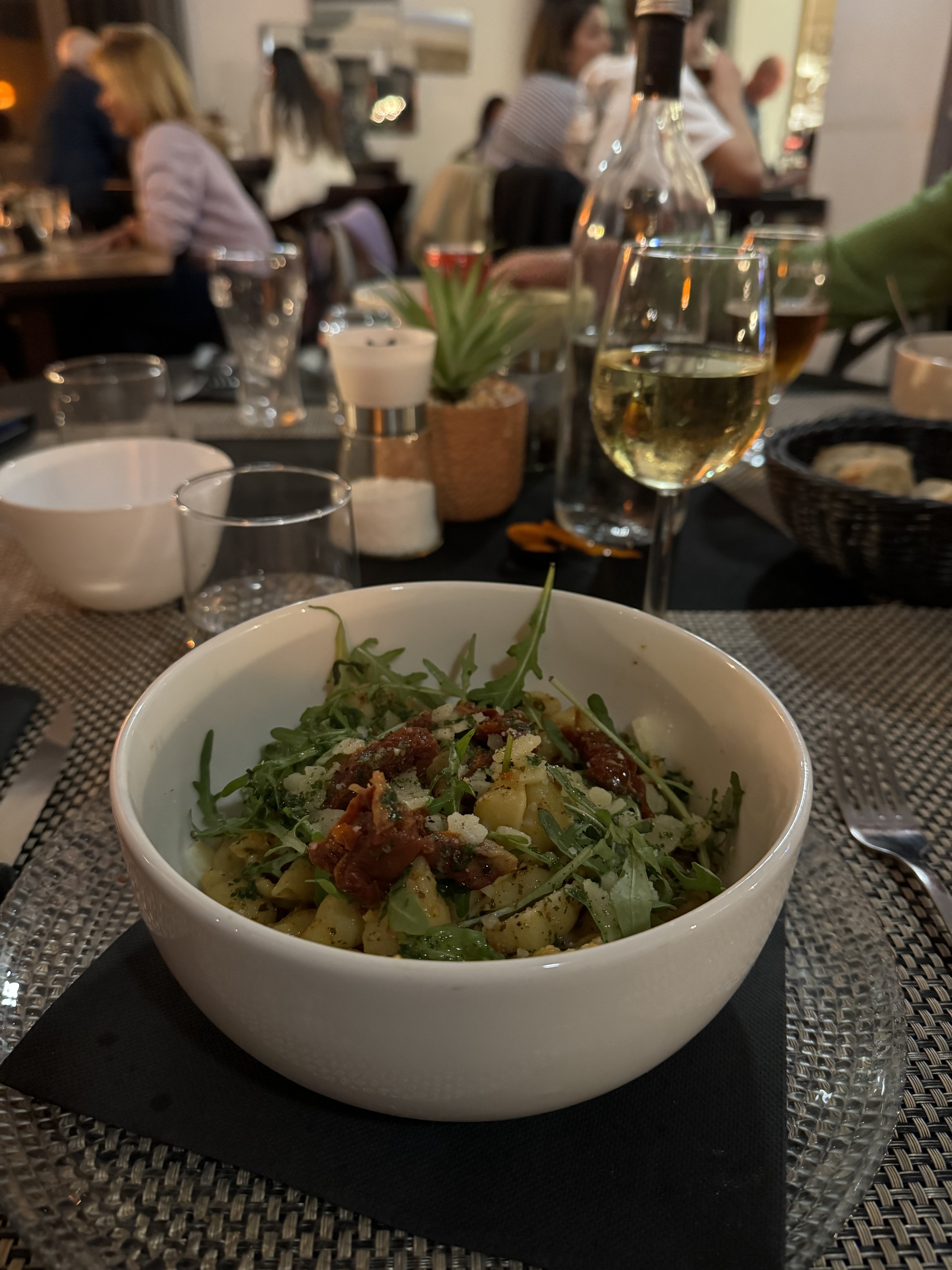 On voulait manger des pâtes ! J'ai appelé pour savoir s'il était toujours possible de venir y manger (14h15). Un resto qui sort de l'ordinaire. Les plats étaient savoureux et travaillés, avec une belle présentation. Le personnel était chaleureux. Une belle découverte, allez y les yeux fermés. Nous reviendrons.