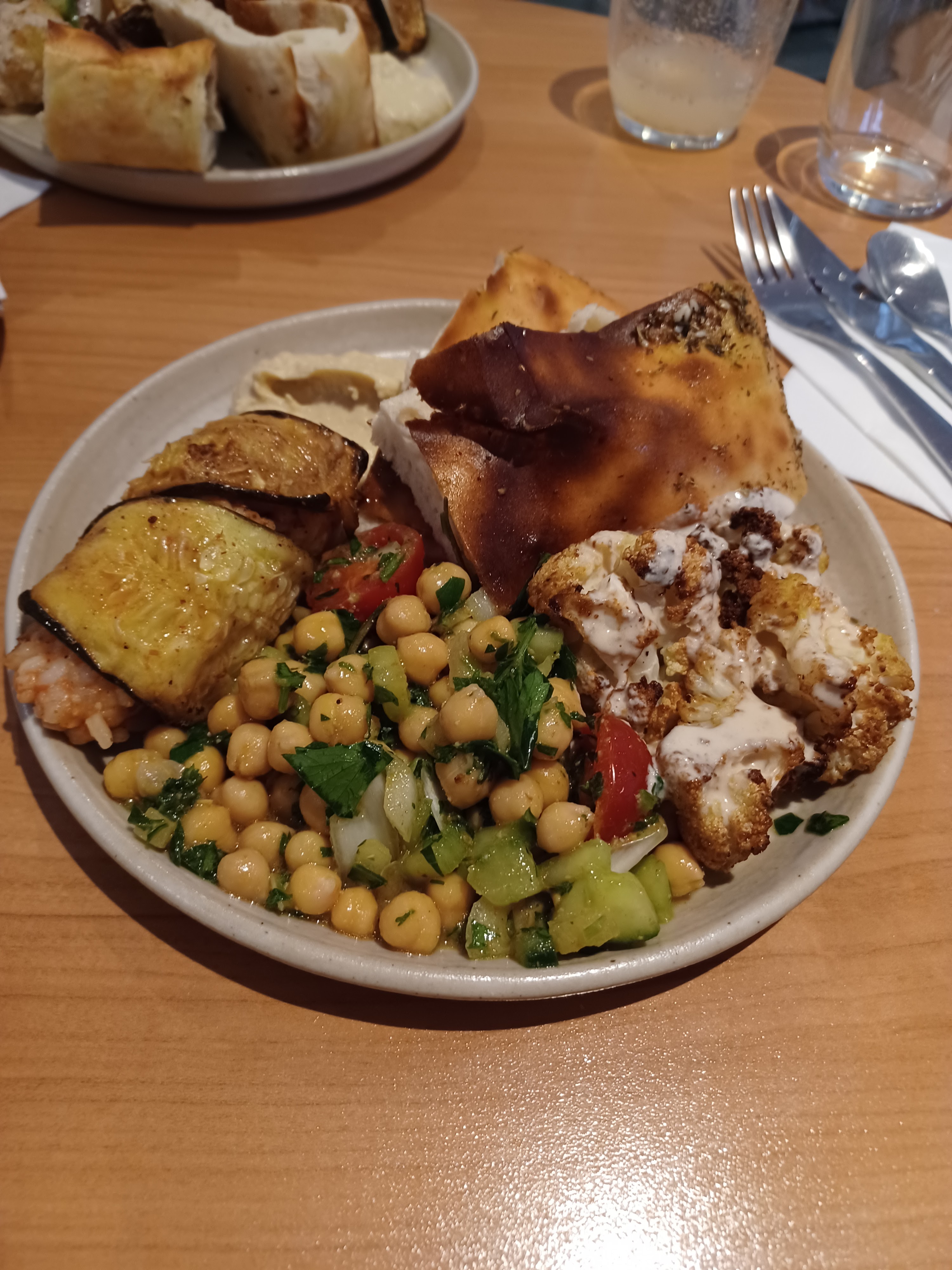 Un petit paradis végétalien :) Nous avons mangé de délicieux Wraps remplis de pois chiches rôtis, de salade, de pommes de terre, de patates douces et plus encore. Absolument délicieux. L'ambiance est charmante aussi et le personnel aussi ?? J'ai pris un biscuit au chocolat sans gluten à emporter. Super délicieux aussi😋