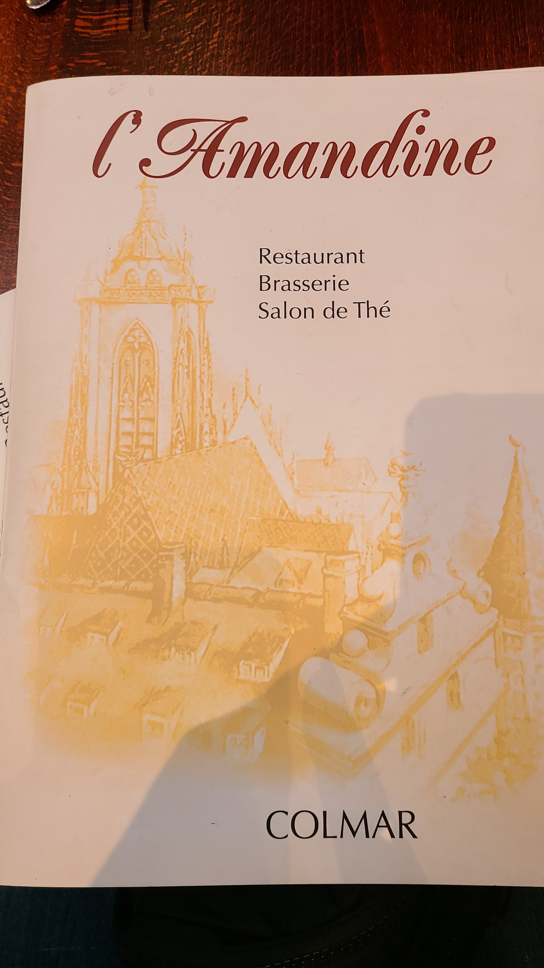 j'adore l'ambiance des brasseries. On y mange bien et on rencontre des gens sympa. c'est ce qui s'est passé à l'Amandine de Colmar. trop de monde, mais on a trouvé une table pour deux. on a goûté leur tarte flambée (délicieuse), et leur civet de biche avec des spaetzles etc.... Un régal. personnel adorable, souriant et aimable, malgré la foule. et ce n'est pas cher.
