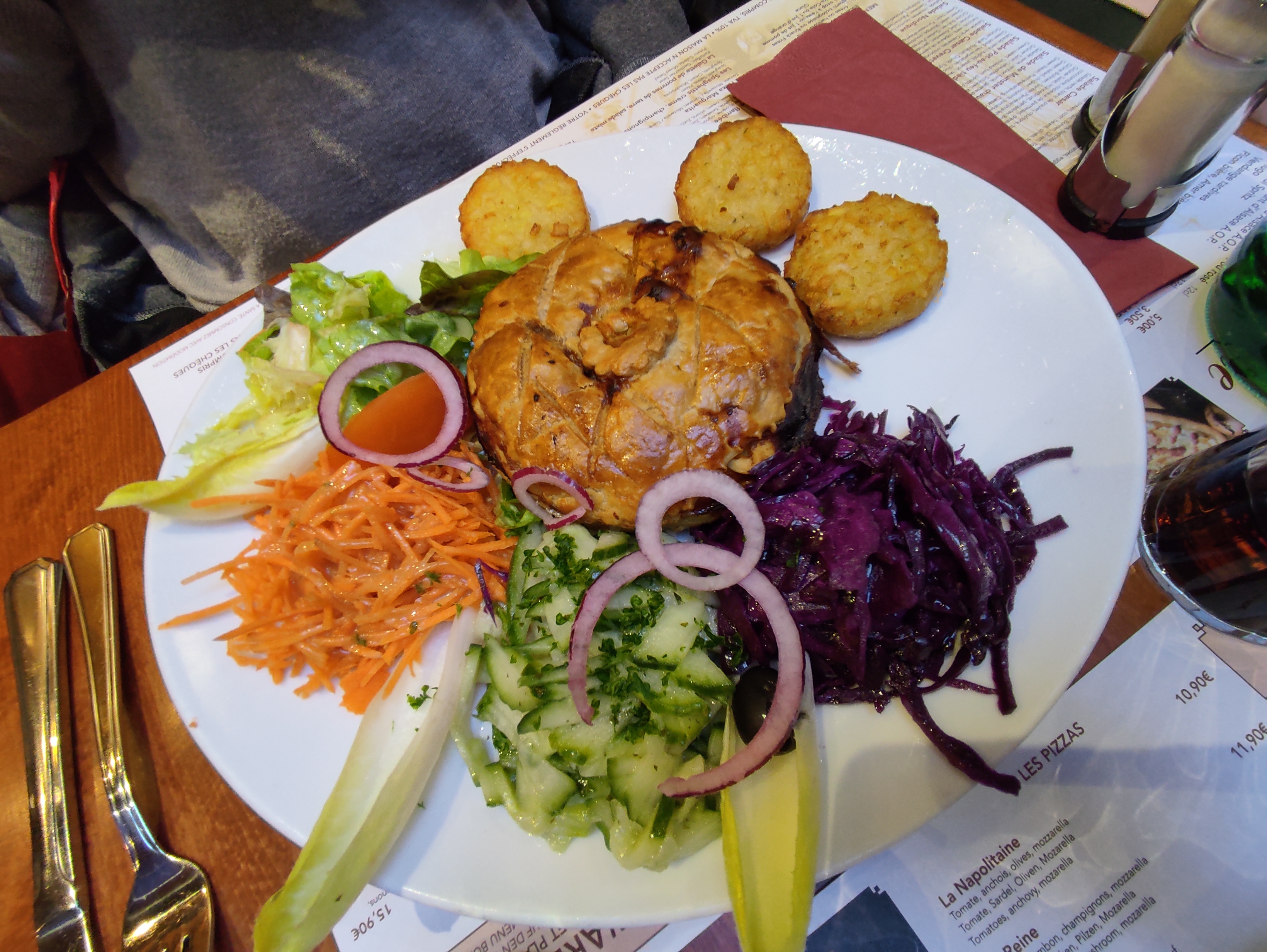Nourriture industrielle fuyez.attrape touristes. Une tourte à la viande qui sort de Metro et 1 cuillère de légumes de barquettes sous vide vendue 20€.c est honteux. Les pizzas c est du surgelé bas de gamme. Je suis Alsacien et j ai honte qu un restaurant propose cette nourriture aux touristes, ca donne une pietre image de notre gastronomie....