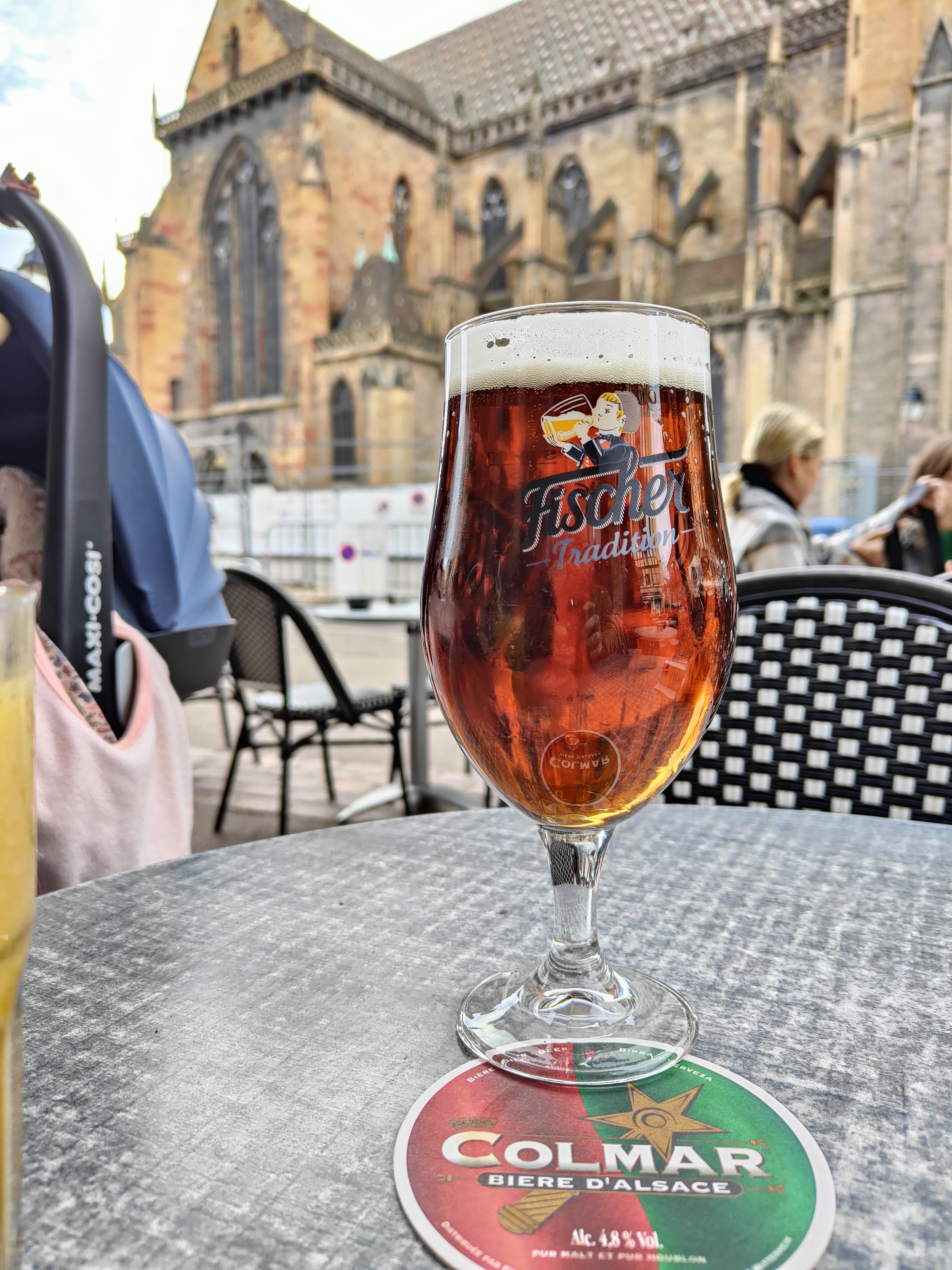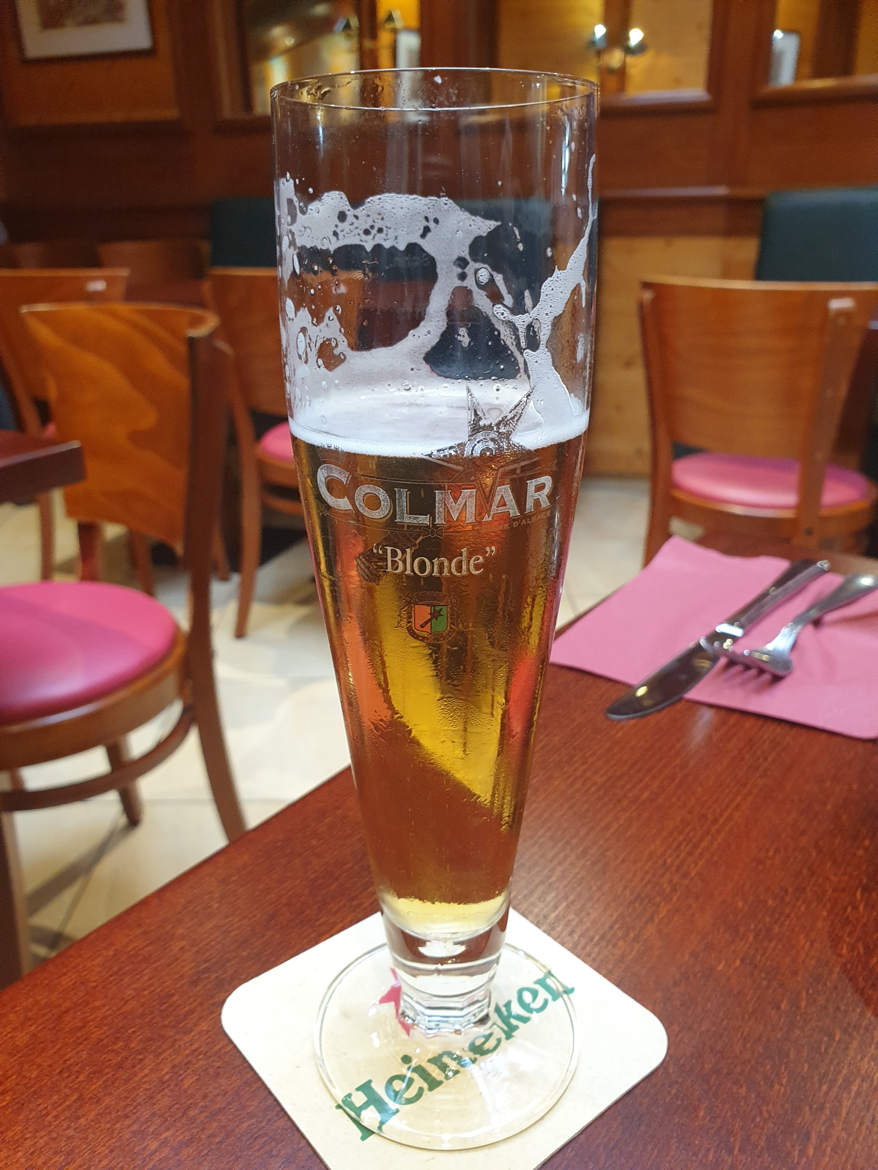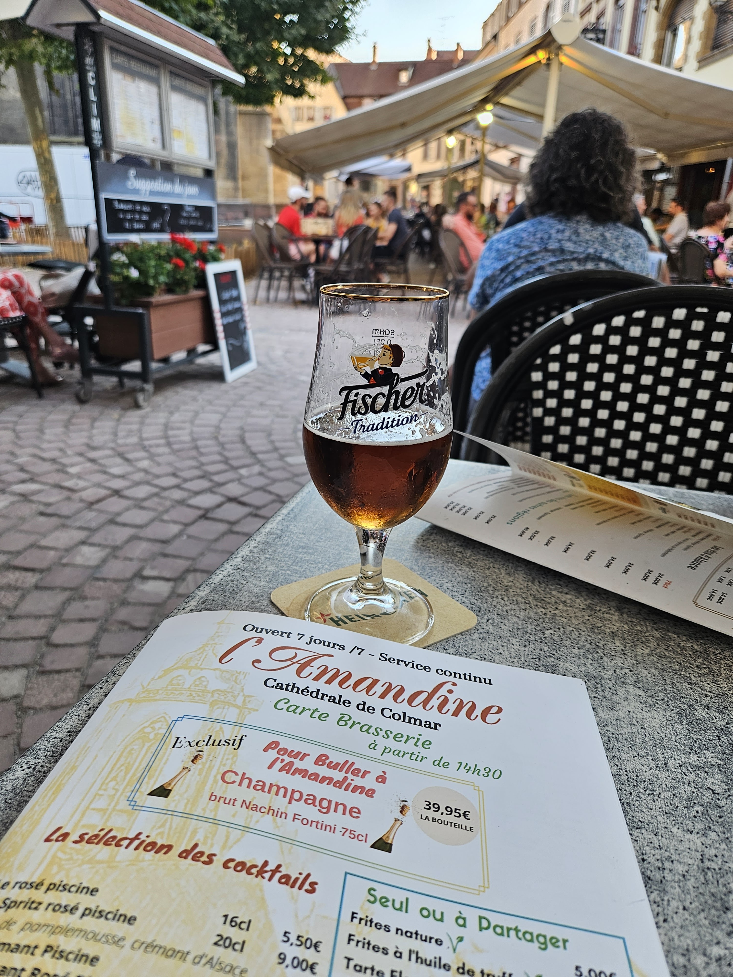 Bière en terrasse Je suis colmarien 4,5 le demi de bière Une blague - plus cher qu’en bord de mer Bon je reviendrai plus