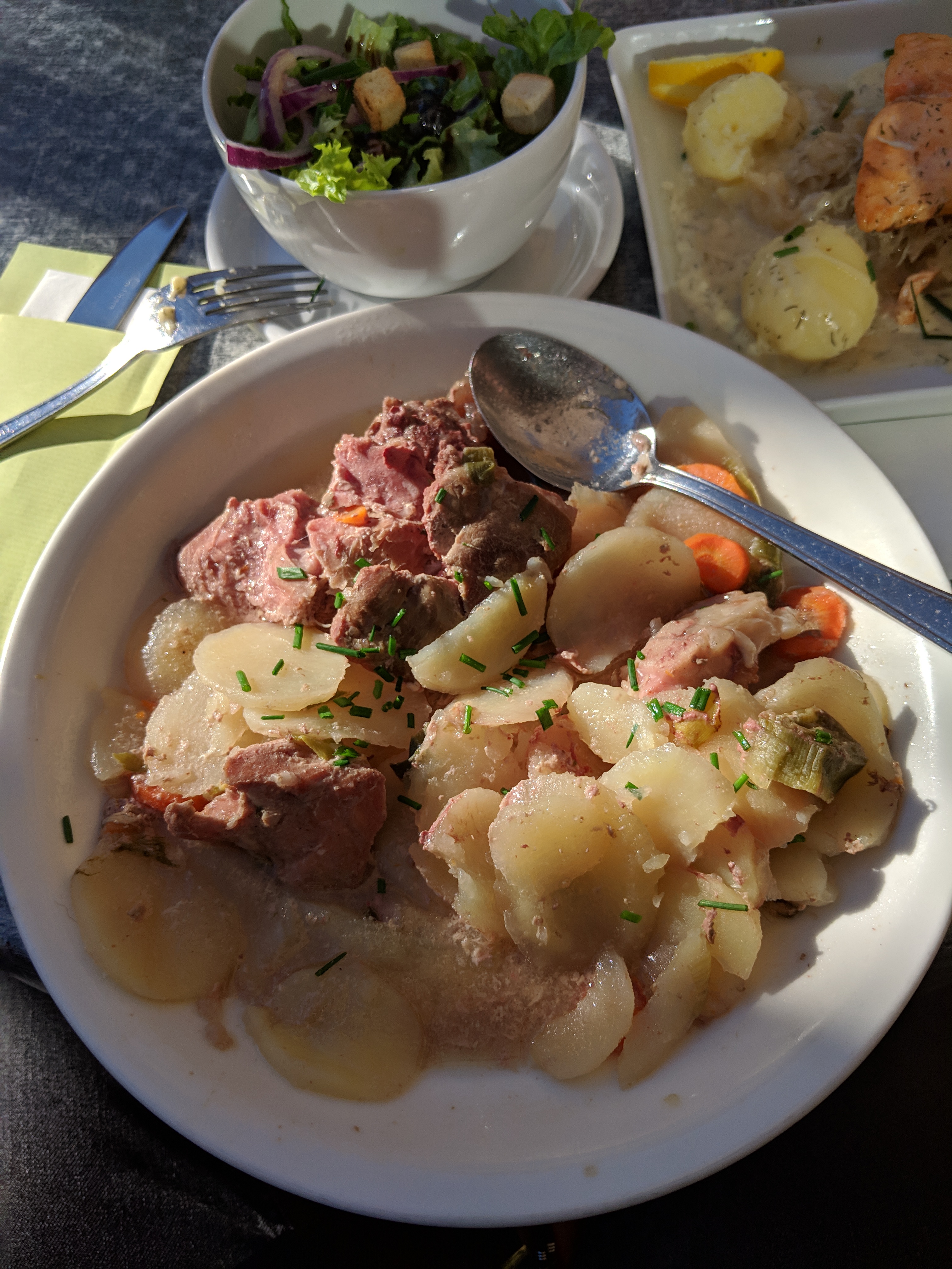 Bon... Ok on est en plein centre de Colmar, mais 4 patates deux morceaux de Munster et une sauce blanche, presque 15€.. crudités qui semblent venir de la cantine scolaire, d'ailleurs c'est le bilan de ce repas, ça ressemble, dans l'assiette, a une cantine. Déçu...