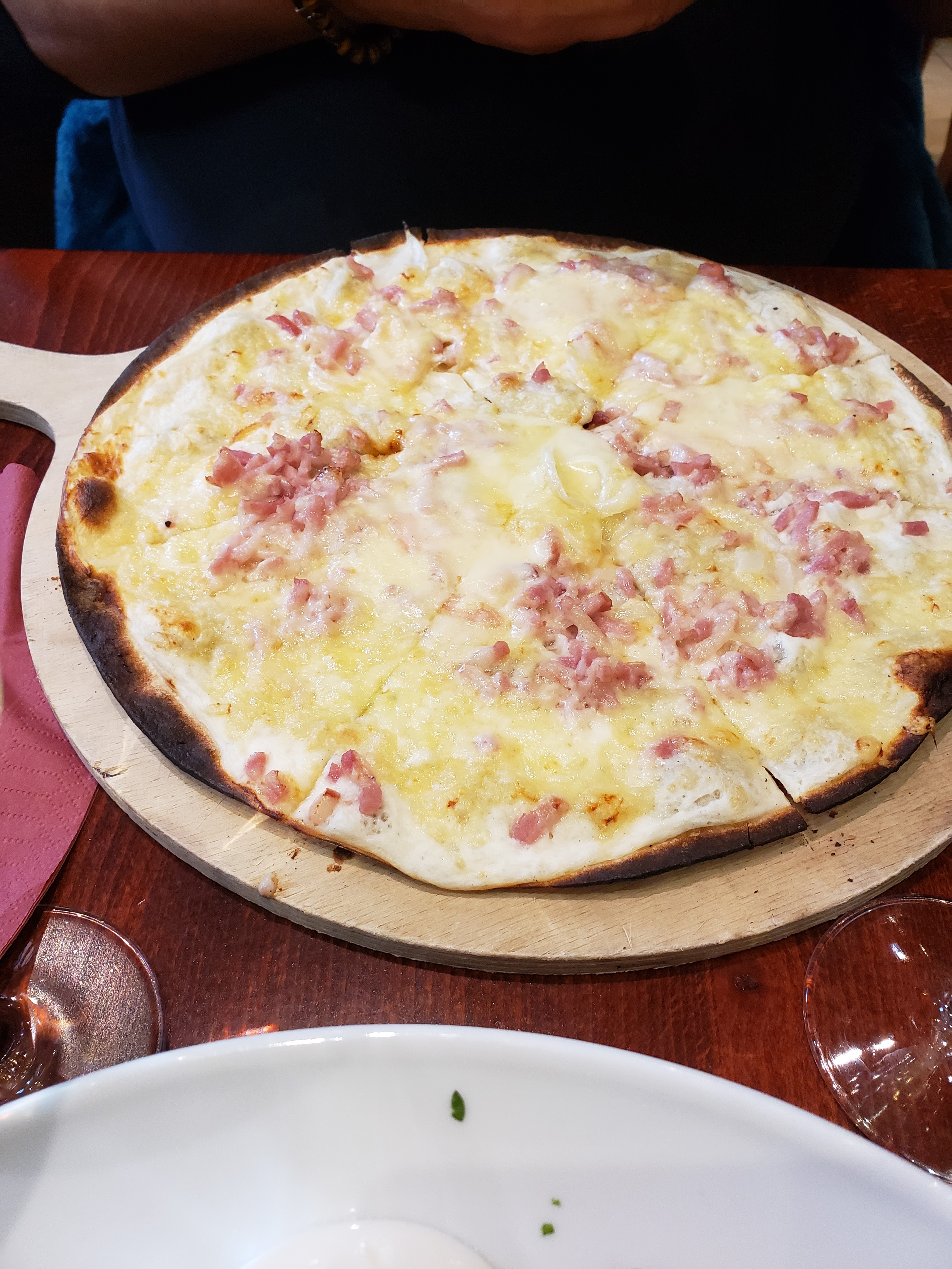 En Alsace, manger sa tarte flambée (Flammekueche) au moins une fois est un incontournable ! C'est ici que nous avons fait une pause après avoir flâné dans les rues de Colmar et pris notre repas. La tarte flambée est un plat simple à préparer, mais je suis toujours surpris de voir à quel point certains restaurants peuvent la faire à ce point. Ici à L'Amandine, heureux de confirmer qu'ils ont bien fait !