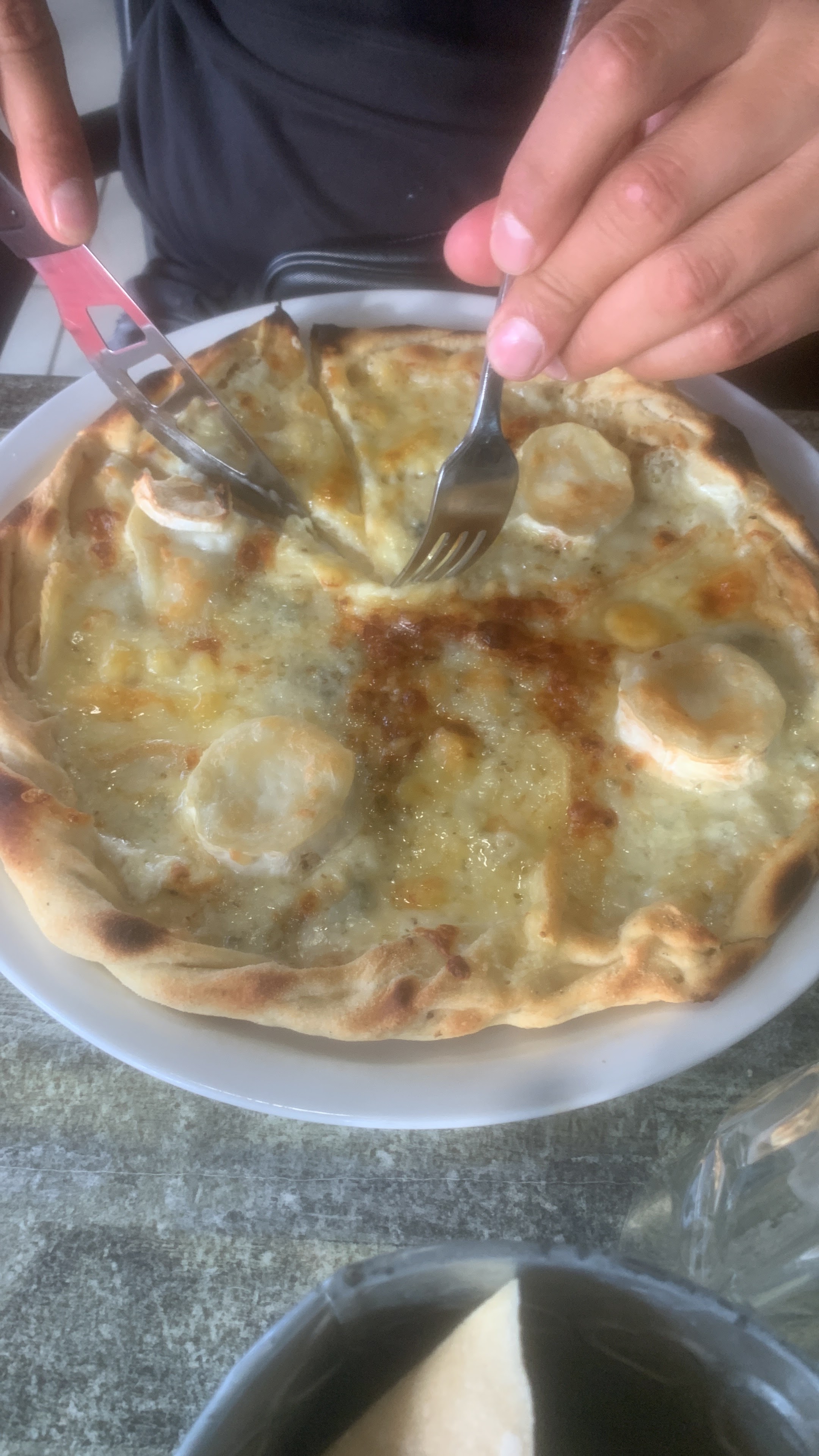 Attente assez longue, tout était plein, on n'a pas eu une table avant 20 minutes. En revanche le service était rapide et on a été servis vite. J'ai pris une pizza 5 fromages qui était pile à ma faim et très bonne. Le serveur était très gentil et nous a même apporté une boîte pour emporter la pizza restante.