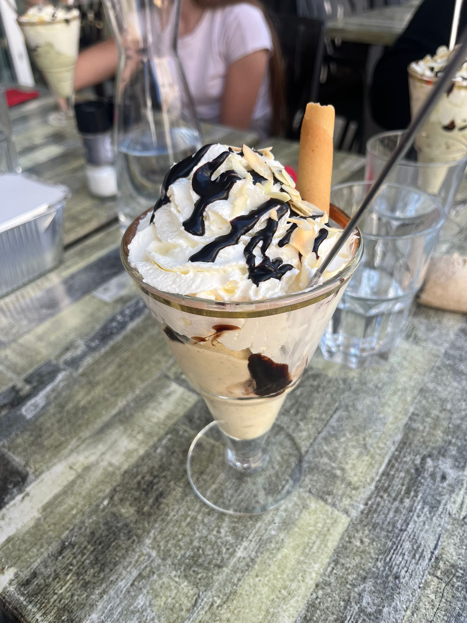 J'ai choisie de prendre les moules au roquefort, elles étaient très bonnes, c'était assez copieux, servies avec frites. Au dessert, la glace pistacho très bonne également. Bon accueil et serveur très bien, réactif 👍 J'en suis sortie satisfaite. Je recommande ✨