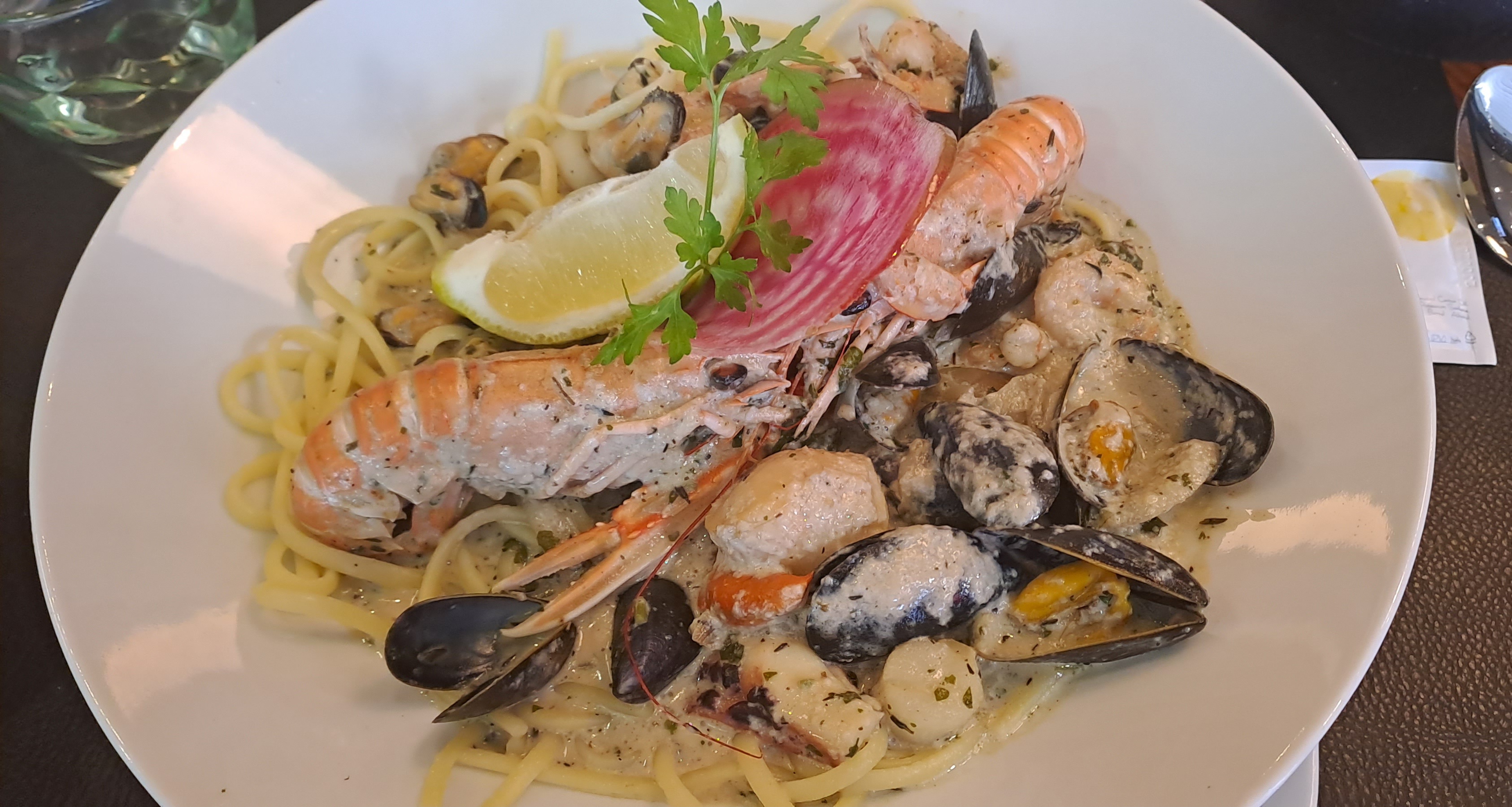 Parfait ! Nous sommes venus sans réservez mais nous avons pu manger et nous avons été bien reçu, personnel très sympathique, nous avons pris des pizzas très bonnes et notre fille des moules elle s’est régalée donc tout va bien Merci .