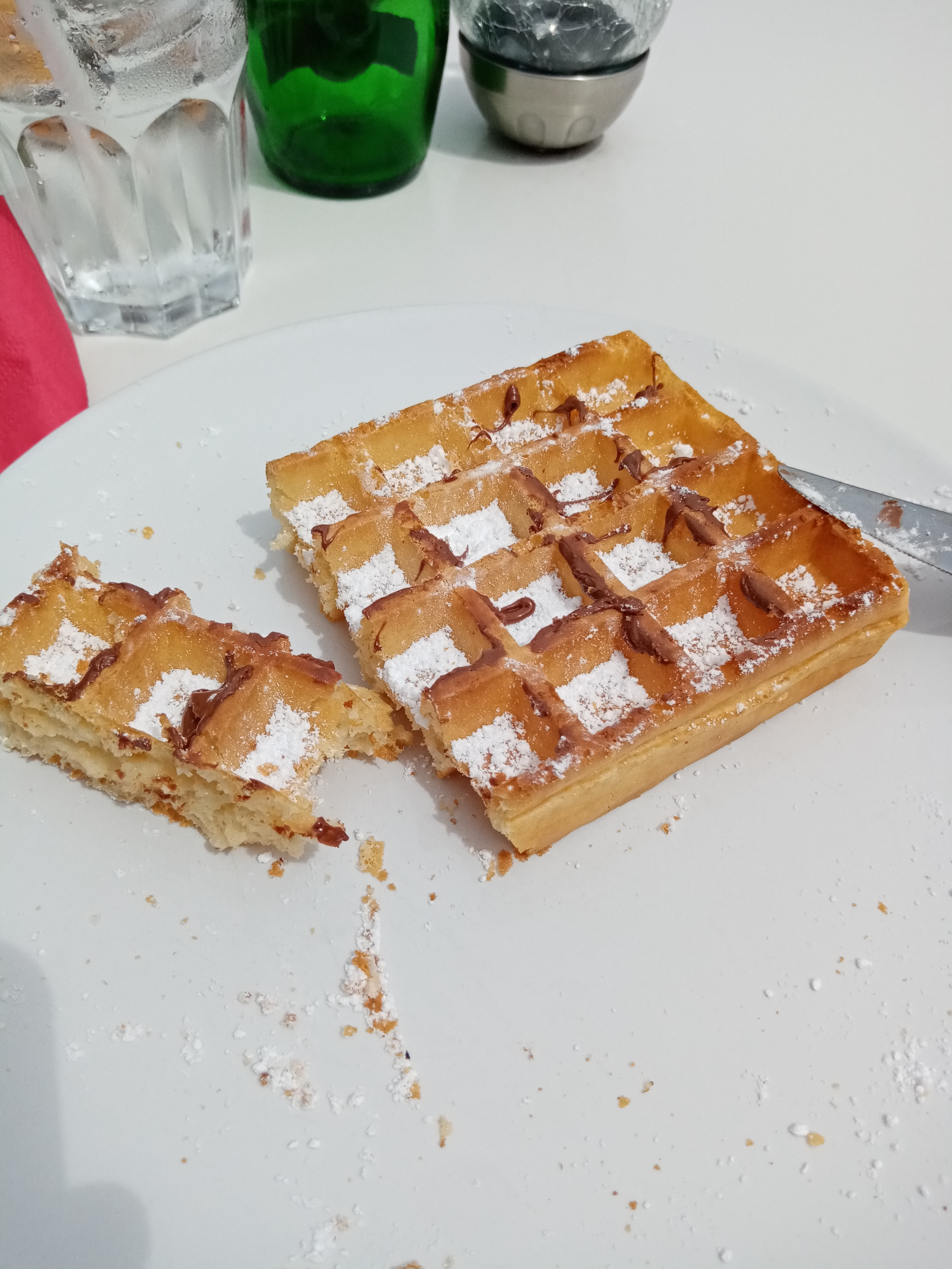 Cadre agréable non loin de la mer et sur une aire de détente et patron sympa. Nous avons juste goûté les gauffres, excellentes !