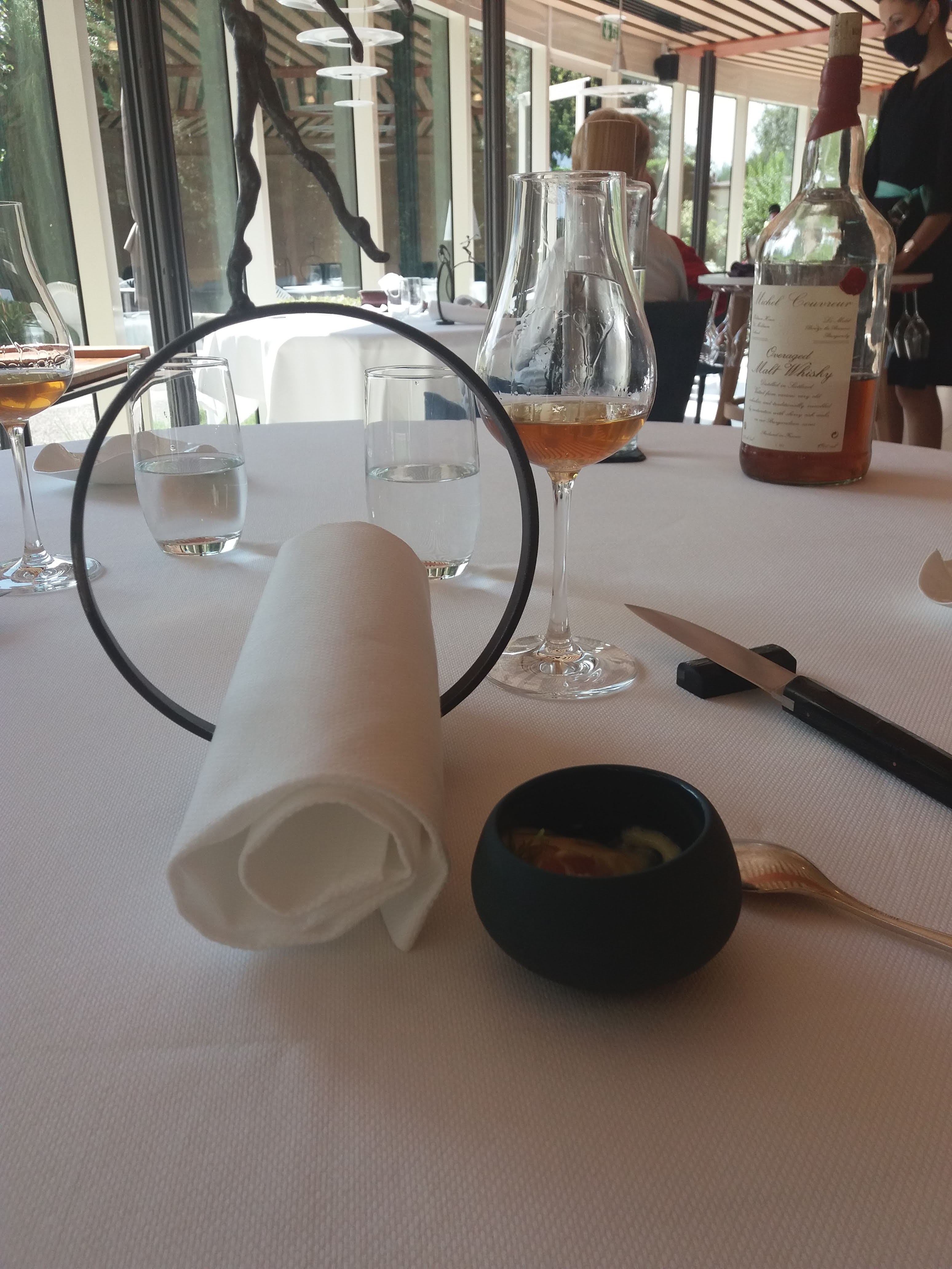 Très belle expérience, troisième venue chez Cédric Burtin et première depuis la deuxième étoile. Les plats étaient parfaits, des mises en bouche jusqu’au dessert. Bémol, nous n’avons pu déjeuner en terrasse du au manque que de personnel. Mais il vaut mieux un bon service « restreint » qu’un mauvais service en terrasse a tout prix. Ils s’adaptent en fonction du personnel disponible et c’est très bien. La terrasse mériterait d’être mise en valeur davantage. Le service était top, nous avions des restrictions alimentaires et tout a été respecté sans que nous ayons à le rappeler, comme si nous étions à la maison. Les serveurs sont professionnels, discrets et attentifs aux différentes tables, toutefois ils manquent de sens du détail un peu plus poussé en raison du standing de l’établissement.
