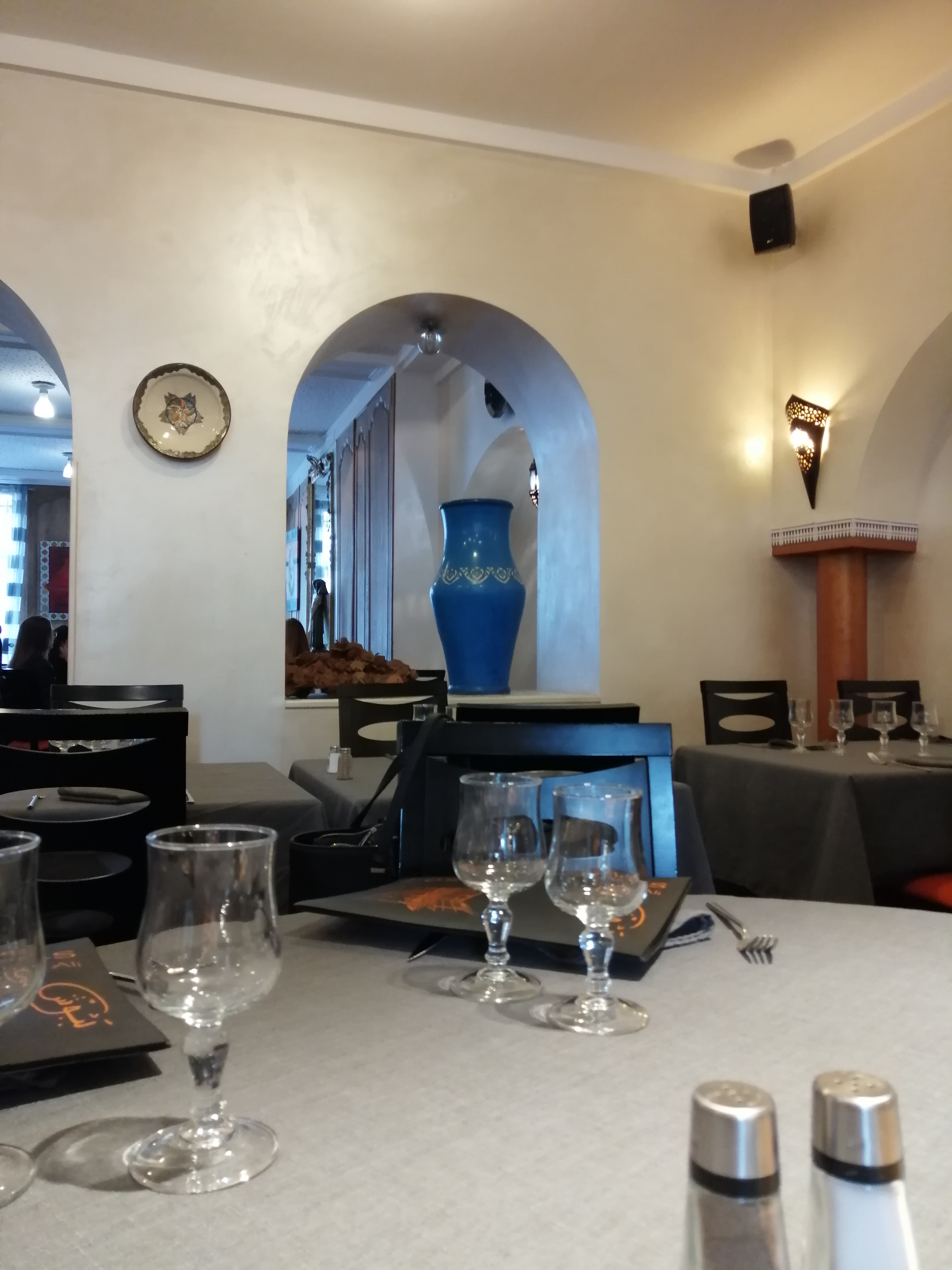 Soirée avec une salle réservé pour 40 personnes, prix par personne très cher par rapport au repas (couscous bon mais sans plus, café gourmand classique -3 petits desserts dont une boule de glace...ce n'est pas assez a mon goût- et vin pas bon du tout). Après, à tester en plus petit nombre avec la carte, je pense qu'on y mange bien et mieux. La bonne note pour le thé marocain qui était très bon.