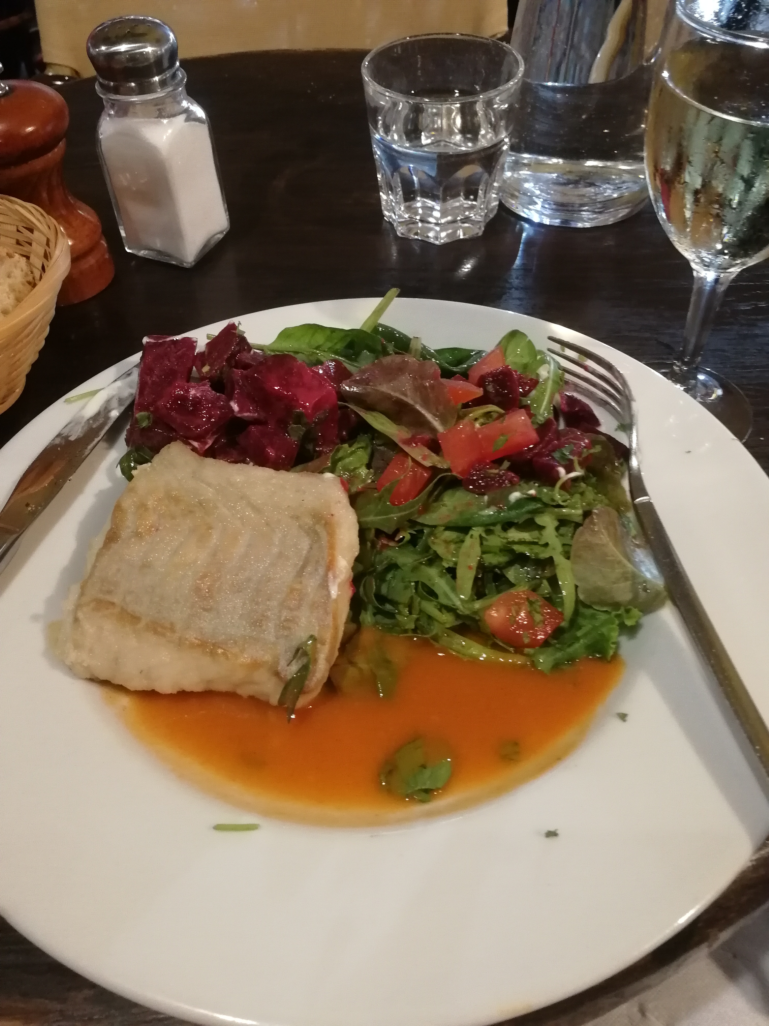 Restaurant central, serveur sympathique et chaleureux, la nourriture je dirais moyenne. Du fait maison gros doute , perso mon filet de julienne et son risotto en plat du jour me sont restés sur l’estomac je n’ai pas pris de dessert, la salade de fruits étant en conserve ,