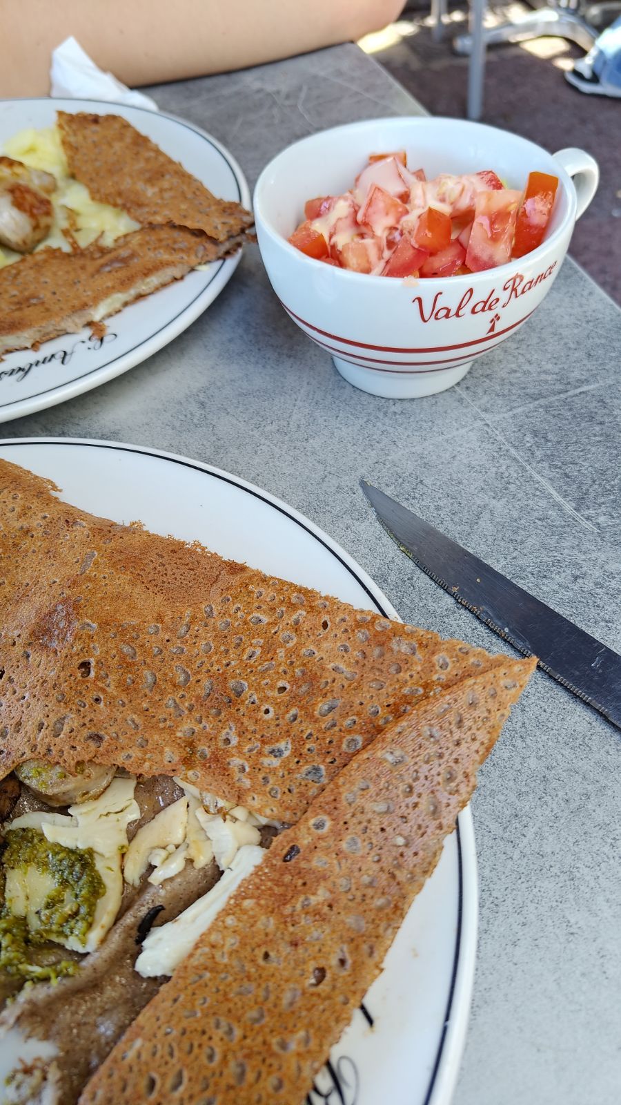 Franchement deçu. Bien que le personnel a l'air charmant il faut attendre une décennie pour être servi alors que nous n'étions que 5 en terrasse. Je comprend mieux le fait de payer de suite et non à la fin des repas. Sinon je serai partie... Les crêpe était composer de 2 tranche de chèvre et de noix qui se battait en duelle dans mon assiette personnelle. J'ai payer 40euro et honnêtement, pour ce pris la j'aurais mieux manger au macdo. Sans compter la vaisselle en plastique sur laquelle il reste de la nourriture. Je ne dirais pas de fuir mais il faut y aller tôt le matin pour pouvoir manger a 13h.