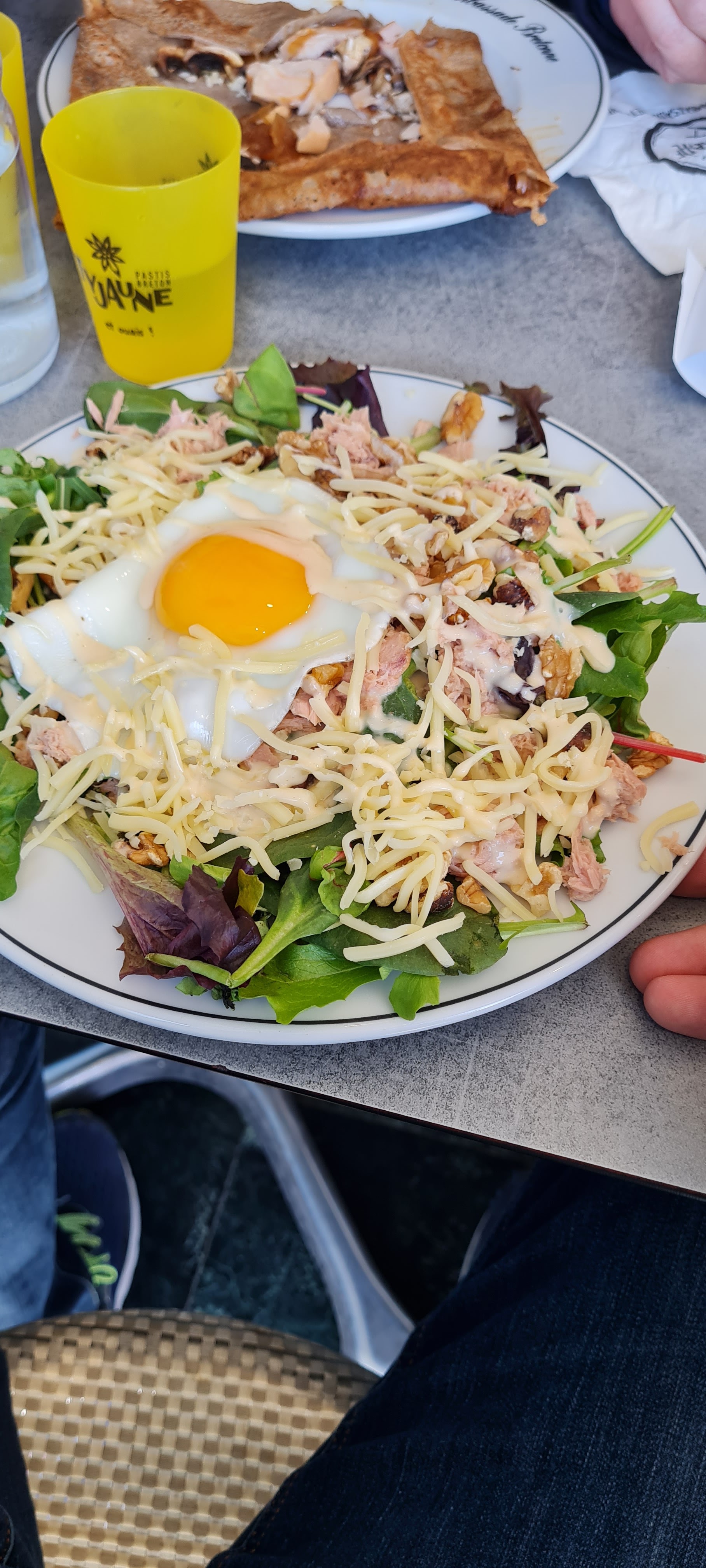 Zero pourri ! J’ai honte pour ma Bretagne ! Fuyez 1. La pâte est mauvaise 2. Les ingrédients très bas de gamme 3. Les crêpes sont froides en ayant attendues 20 minutes sur le comptoir alors que nous sommes 10 en salle ! 4. Le crêpier a 2 de tension et met 30 minutes à faire 5 crêpes 🤣🤣 5. Tout est scandaleux, en photo l accompagnement salades/tomates pour les crêpes salés à 2,50€ Revendez le fond de commerce si il vaut encore quelque chose et laissez le aux professionnels!!