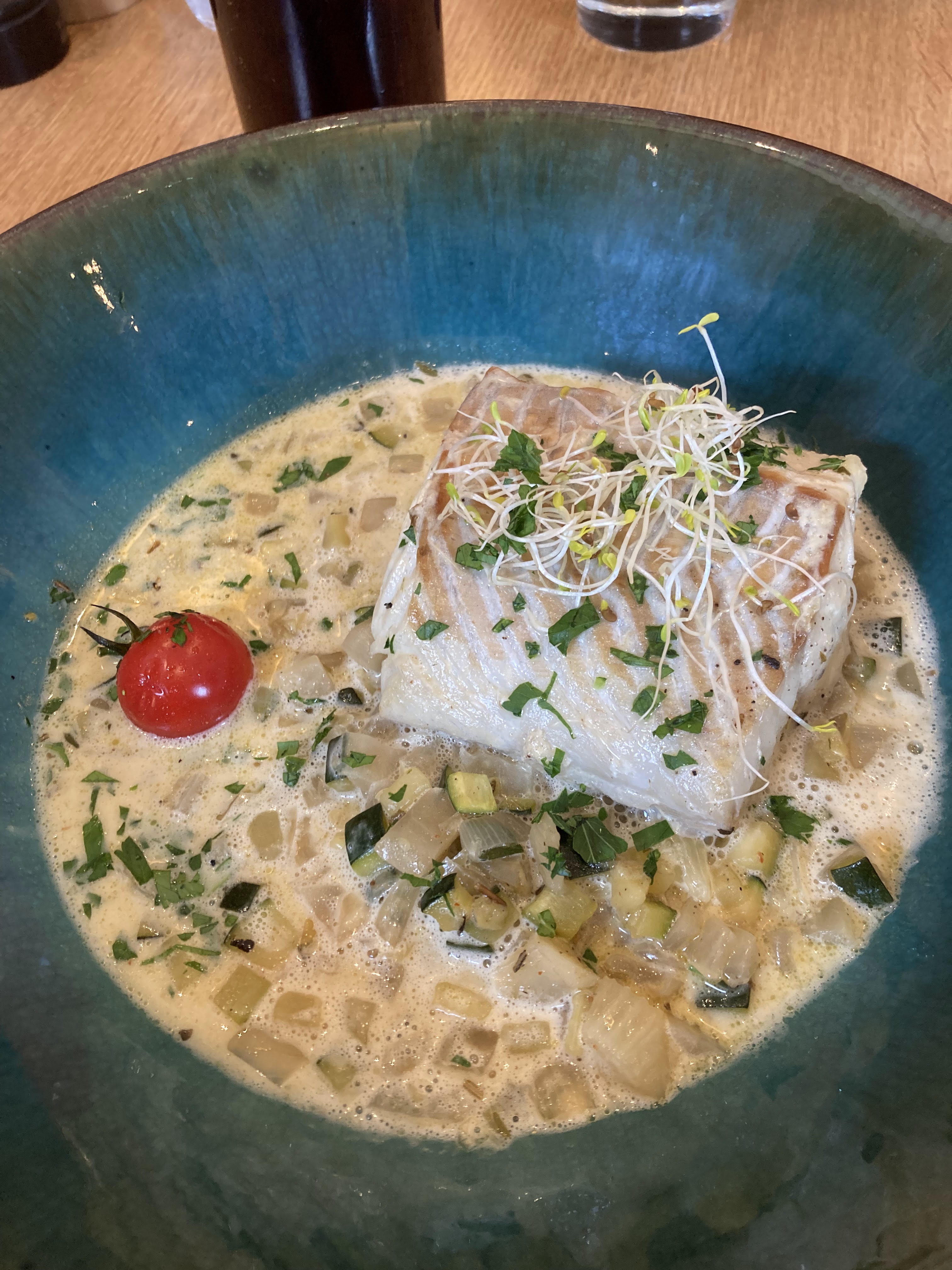 Une cuisine savoureuse, raffinée, créative, accessible et copieuse, servie dans un cadre calme par des serveurs attentifs et un chef sympathique qui vient discuter en salle, voilà clairement une adresse à recommander !