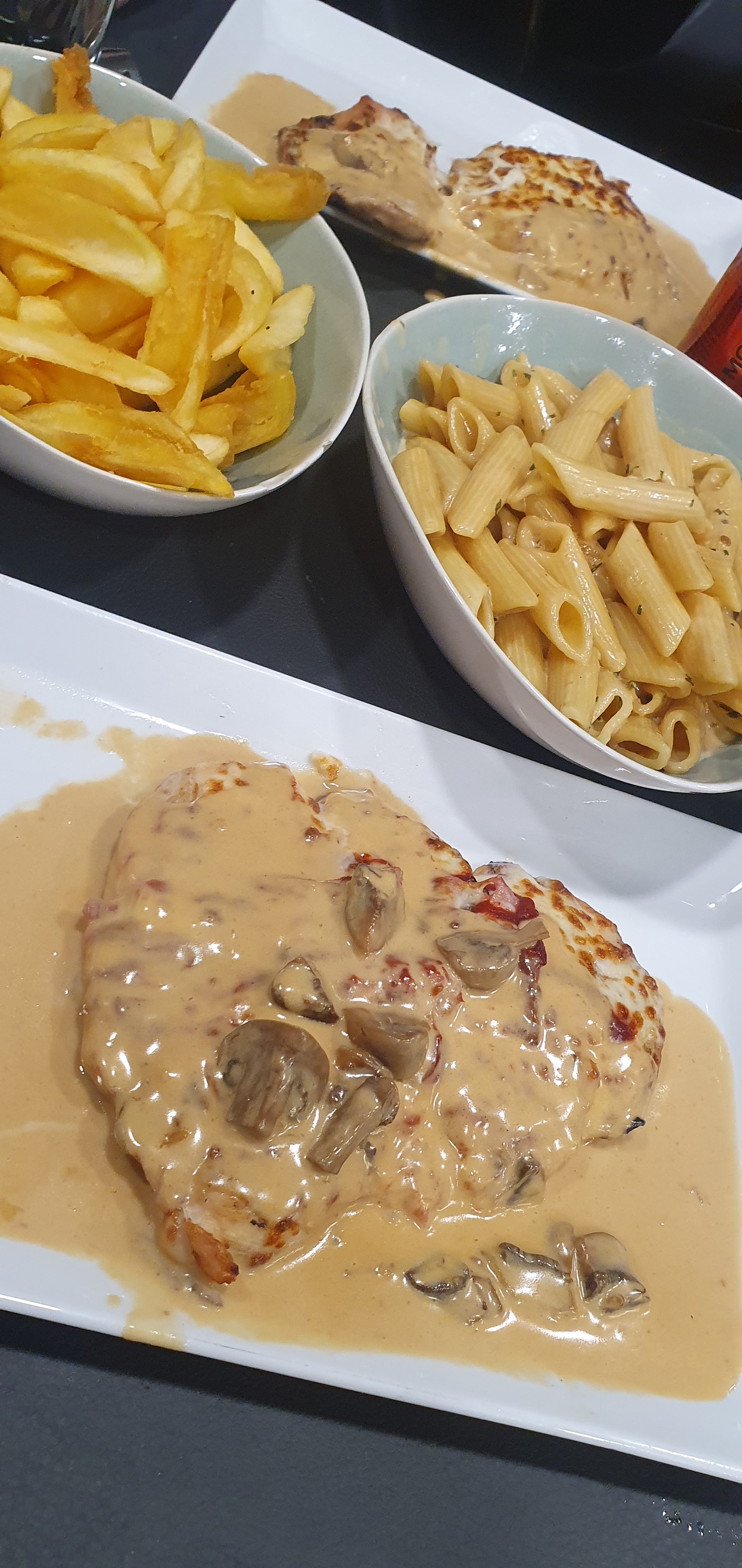 On a bien manger. Malgré l'attente c'était super bon . Escalopes du chef et penne a la carbo .