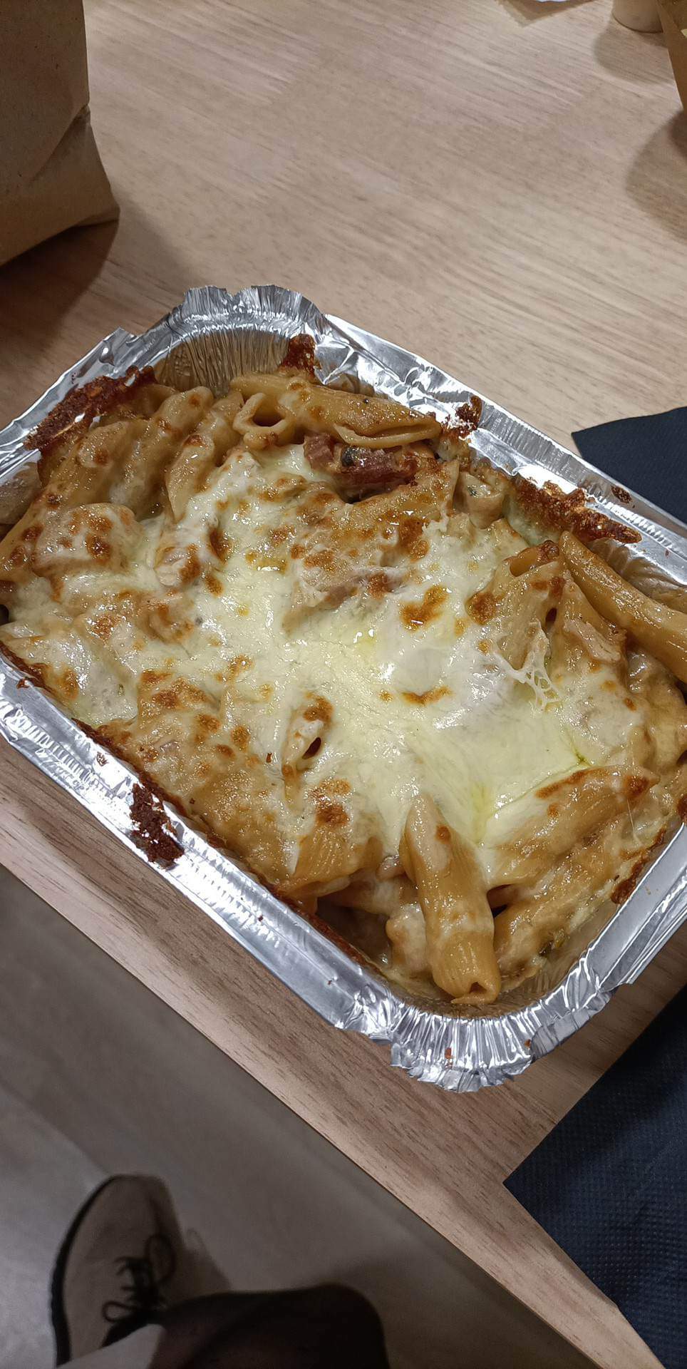 Les pennes sauce champignons était bof, j’ai fini mon repas par un tiramisu plus bon le couvercle gonflé, et ça a fini par une purée de fesses. En diarrhée. On me l’a recommandé, une fois pas 2 merci ✋