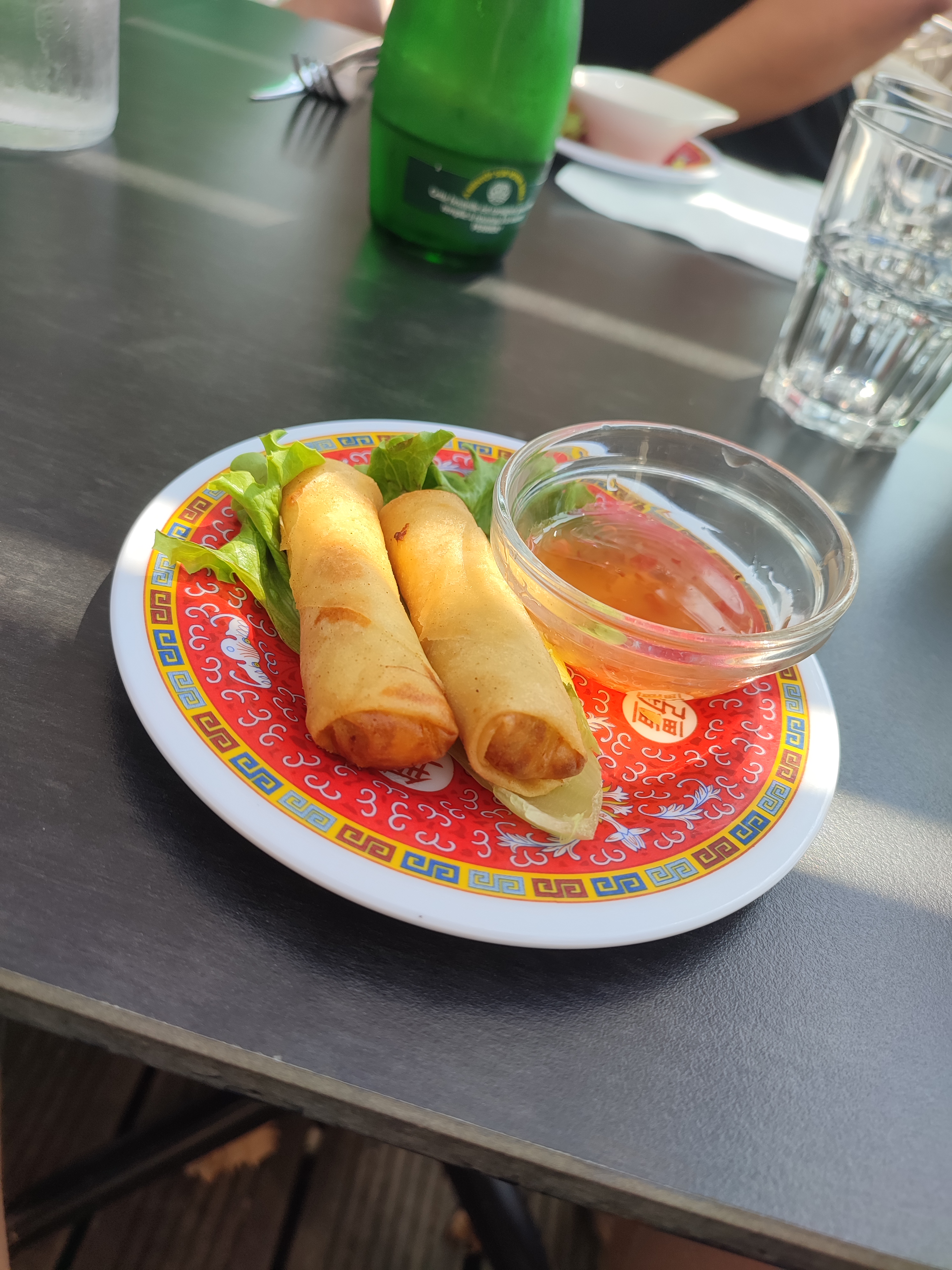 Déjeuner agréable en terrasse sur la route des vacances. Le personnel est hyper accueillant et sympathique. Côté cuisine, nous avons adoré la salade cambodgienne, bien fraîche, parfaite pour ces fortes températures ainsi que le banh xeo, crêpe vietnamienne au porc haché et lait de coco. En revanche, le pad thaï nous a un peu déçu, il manquait de citron vert et de sauce ce qui le rendait un peu sec.